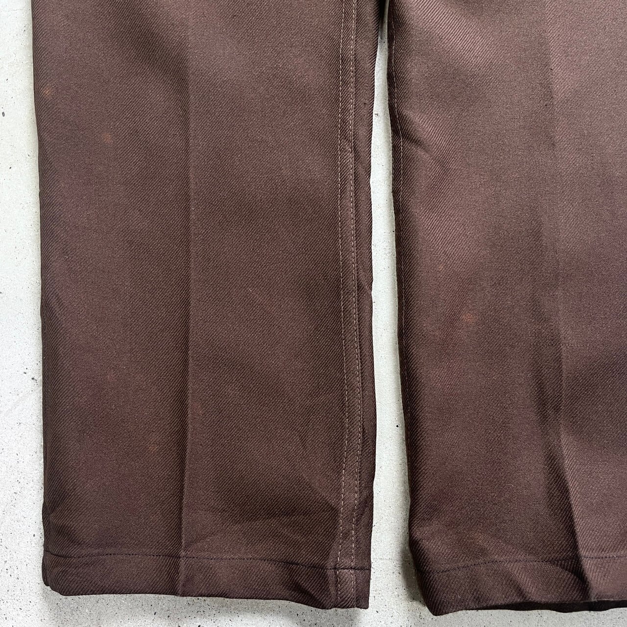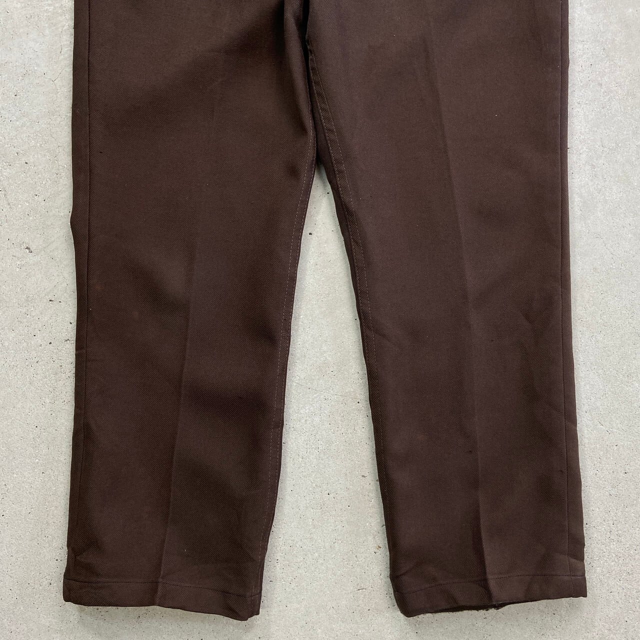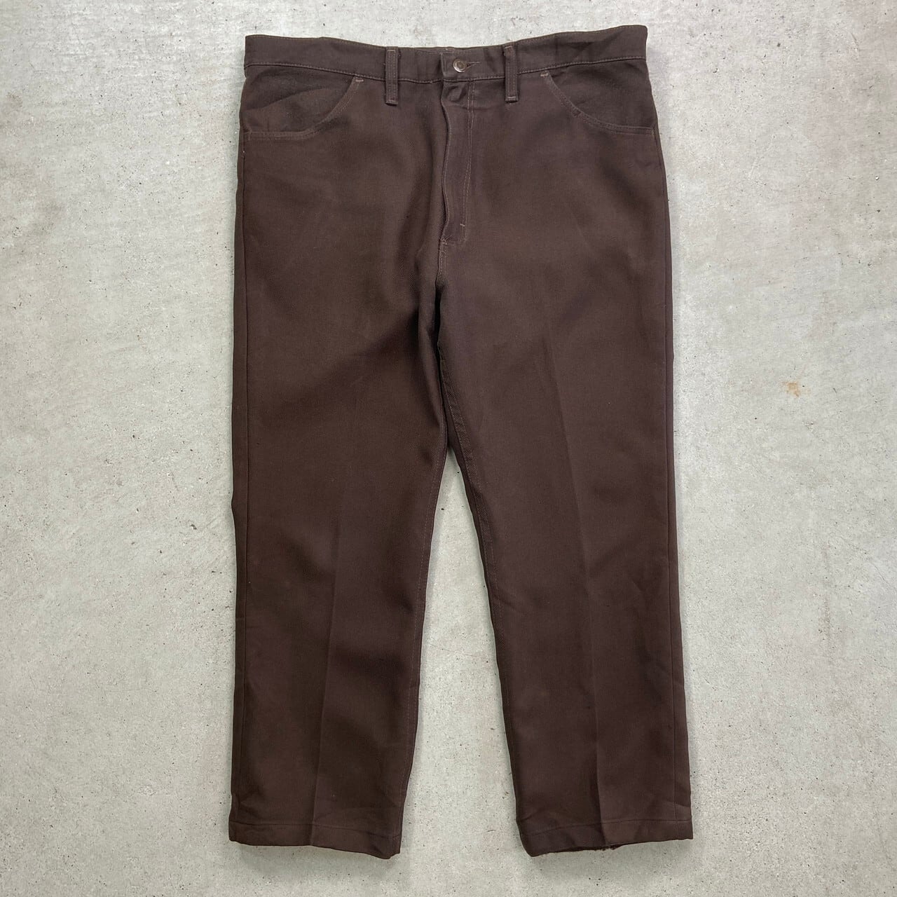 ■90年代 USA製 Wrangler ラングラー ランチャードレスパンツ スラックスパンツ W38 古着 90s ヴィンテージ VINTAGE ストレート ビッグサイズ 大きいサイズ 茶色【スラックス,スタプレ】/ブラウン 【サイズ】表記 38×30(実寸約L26) 裾上げされています。 ※計測値をご確認ください。 ウエスト(平置き×2)…95 ワタリ幅…34.5 股上…32.5 股下…65 裾幅…21.5 【生産国】USA製 【素材】ポリエステル100% 【状態】数か所多少のスレ、フロント両裾付近に色抜け、左横に薄汚れ等の使用感がございます。 画像にてご確認ください。 【c250503012】 ※古着は洗濯、検品などのケアを行っております。(新品・デッドストックは洗濯していません。) ※モニターの発色により実物と異なる場合がございます。予めご了承ください。 ※ 海外直輸入USED品になります。