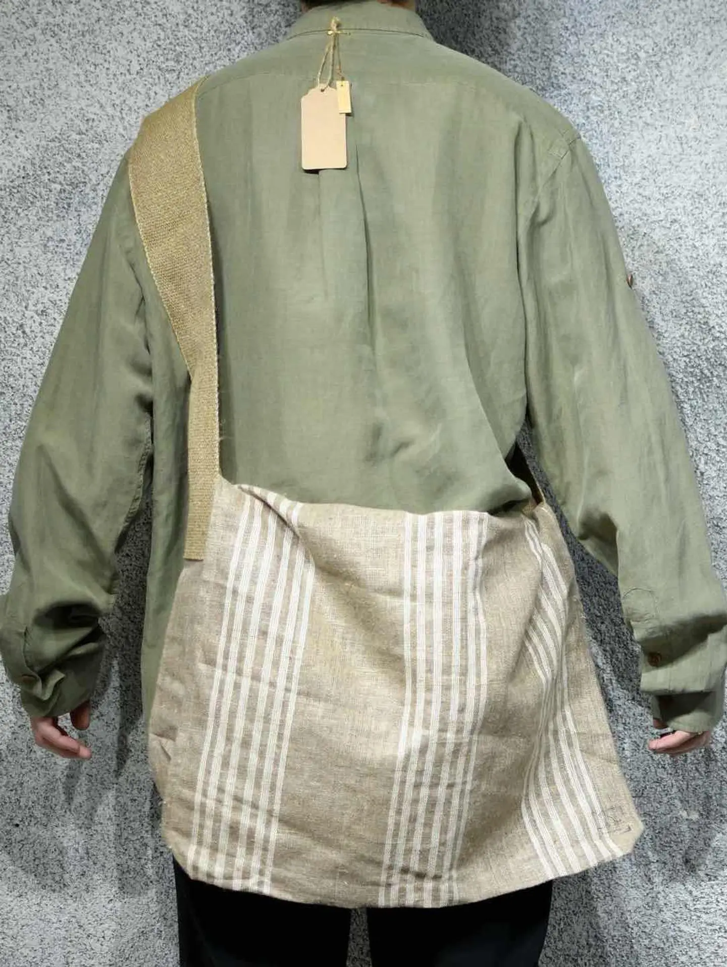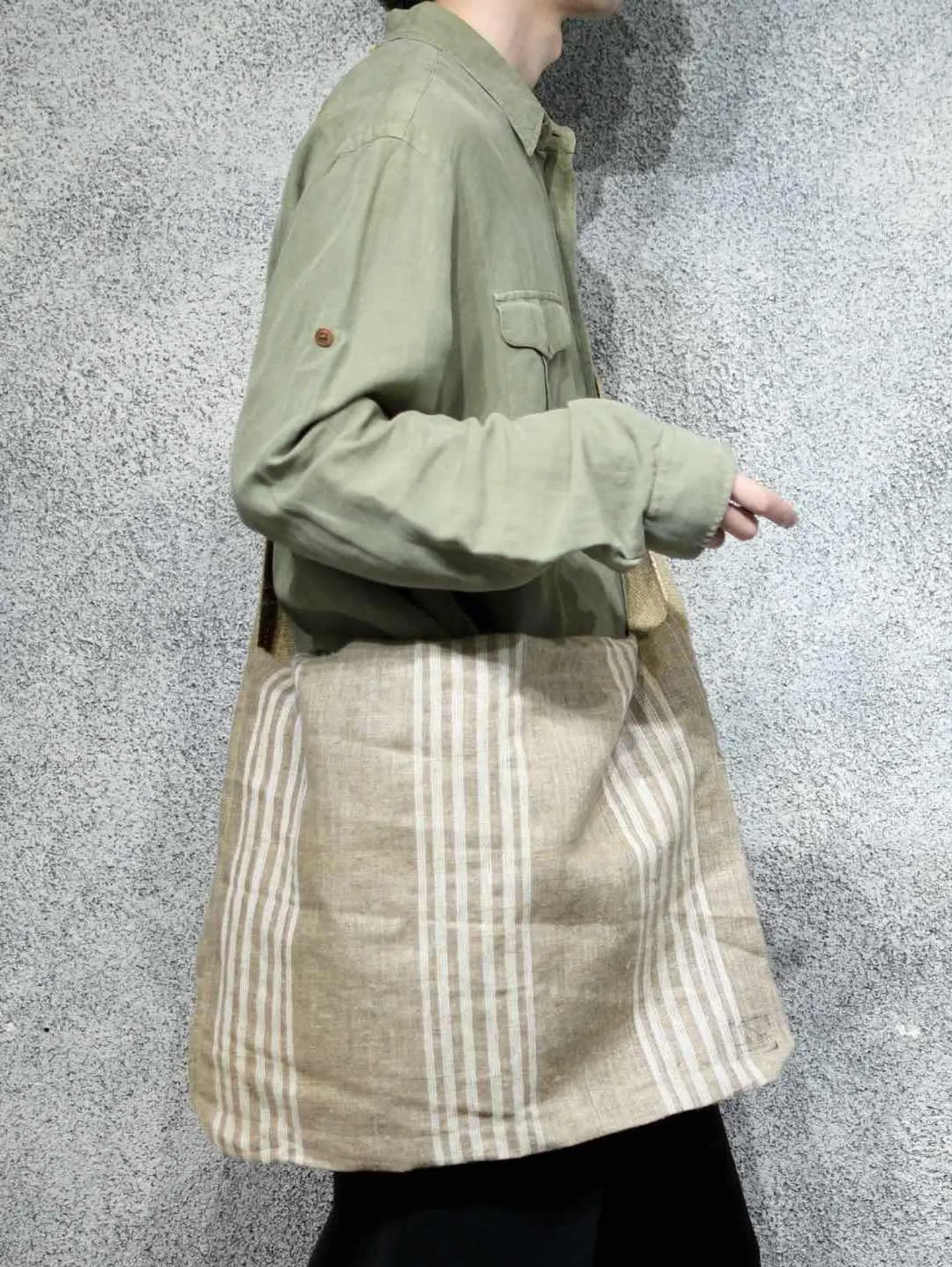 サイズ 縦40cm 横55cm ベルト~132cm ベルト幅8cm fabric/linen 着用画像 177cm/64kg チェコ軍の枕カバーと、スウェーデン軍の 荷物固定用のベルトを使用し、 製作したオリジナルのショルダーバッグ。 どちらもミリタリーらしいリネン生地で、 その生地感やステンシルなど、新品には無い 雰囲気を纏ったアイテム。 ベルトは好みに合わせて調整でき、前掛けタイプで 今までにはなかったオリジナルバッグ、 大容量で、パソコンやその他諸々1つで済む ところもポイントです。 日常使いしやすい比較的シンプルなデザインは、 ミリタリーだけでなく、幅広いコーデに対応出来る 頼れるバッグ。 ※サビ等あり。 ※撮影状況により、実物と多少色が異なる場合が ございます。 ※古着を取り扱っているため、気づかない汚れや ほつれ等がある場合がございます。 予めご了承ください。 ※サイズは着用感で選んでおり、表記サイズではございません。 古着 old vintage ヴィンテージ used 80's 90's アメリカ古着 ユーロ古着 メンズ レディース POLO RALPH LAUREN Eddie Bauer OLD GAP Eddie Bauer LANDS' END ランズエンド LLBean エルエルビーン オールドギャップ エディーバウアー ラルフローレン ブルックスブラザーズ Brooks Brothers ニュースペーパーバッグ アメリカ軍 usarmy イタリア軍 イギリス軍 フランス軍 ミリタリー などがお好きな方 #vintage #オーバーサイズ #old #used #90s #80s #古着 #ヴィンテージ #アメリカ古着 #ユーロ古着 #古着男子 #古着女子 #LLBean #エルエルビーン #EddieBauer #エディーバウアー #oldgap #オールドギャップ #LANDSEND #ランズエンド #NAUTICA #ノーティカ #ラルフローレン #POLORALPHLAUREN #ブルックスブラザーズ #BrooksBrothers #ミリタリー #メッセンジャーバッグ #ショルダーバッグ #ハンドメイド #チェコ軍 #スウェーデン軍 #バッグ #リメイク #ニュースペーパーバッグ
