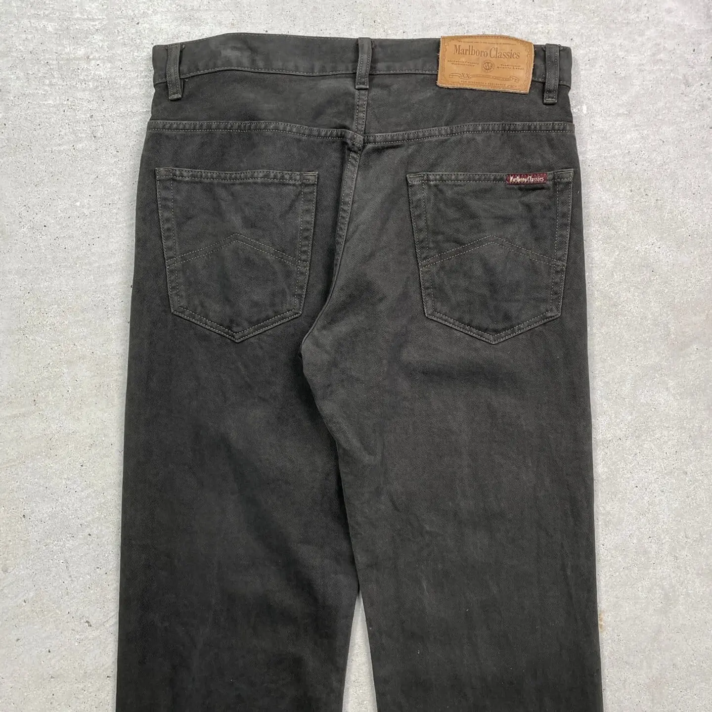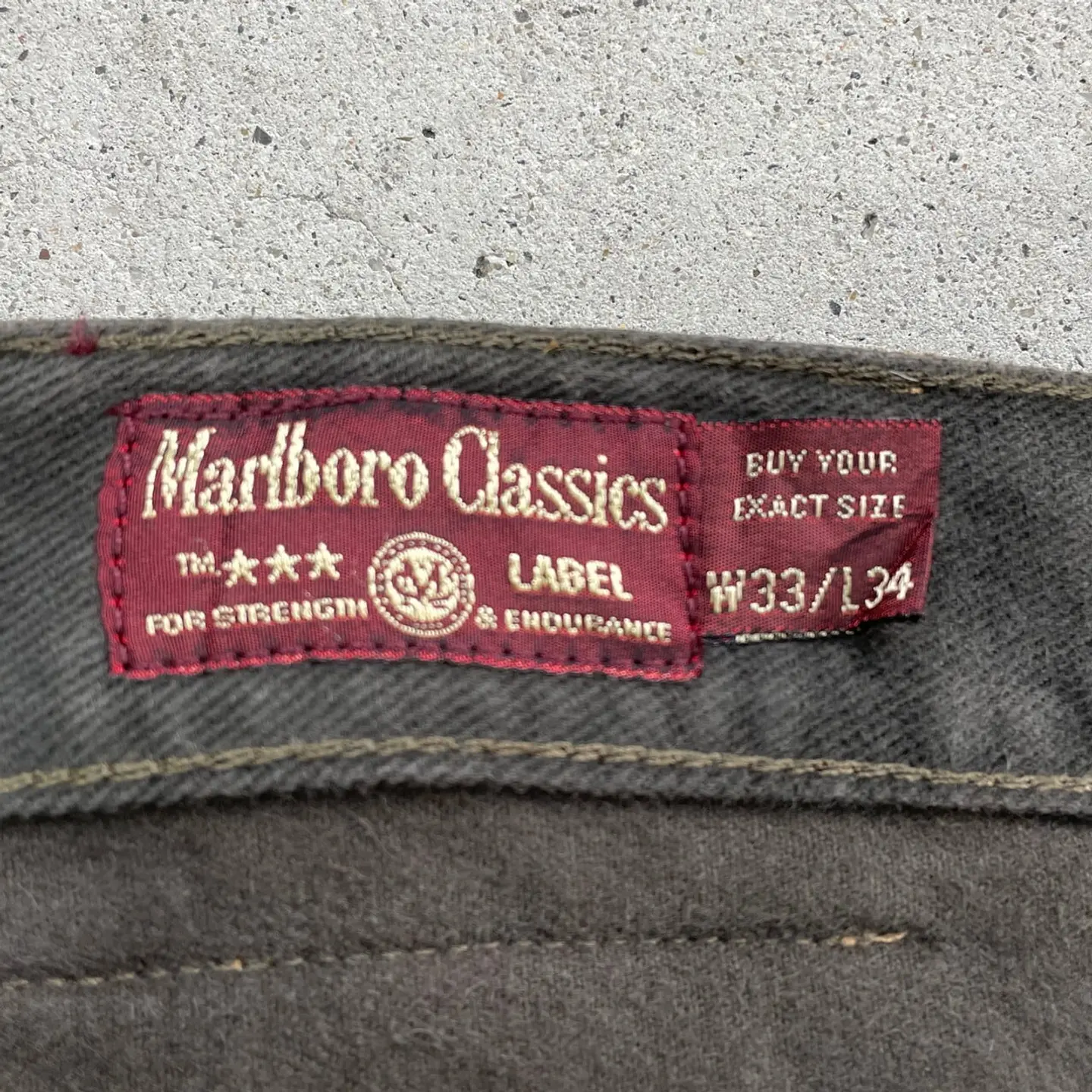 ■90年代 Marlboro Classics コットンパンツ 5ポケットパンツ ストレート メンズW33 古着 90s VINTAGE ヴィンテージ フェードブラック 茶色【チノパンツ,コットンパンツ】/ブラウン ◎やや起毛しておりしっとりとしたモールスキンのような質感のツイル生地です。 【ブランド】 Marlboro Classics 【サイズ】表記 W33 L34(実寸約L31) 裾上げされています。 ※計測値をご確認ください。 ウエスト(平置き×2)…84 ワタリ幅…33 股上…27.5 股下…77.5 裾幅…22 【生産国】チュニジア製 【素材】コットン100% 【状態】多少の使用感はございますが、 目立った汚れやダメージ等は無くまだまだ長く愛用していただけます。 画像にてご確認ください。 【c250506005】 ※古着は洗濯、検品などのケアを行っております。(新品・デッドストックは洗濯していません。) ※モニターの発色により実物と異なる場合がございます。予めご了承ください。 ※ 海外直輸入USED品になります。