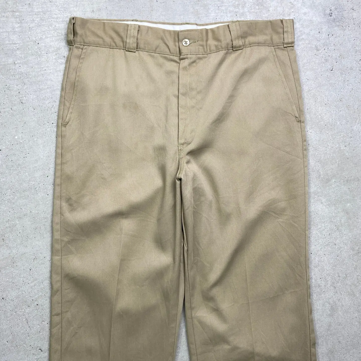 ■70~80年代 UNION MADE ユニオンメイド ワークパンツ チノパンツ チノパン メンズW36 古着 70s 80s アメカジ ヴィンテージ VINTAGE 42TALONジップ ベージュ カーキ【チノパンツ,コットンパンツ】/ベージュ 【ブランド】UNION MADE ユニオンメイド 【サイズ】表記 不明(実寸約W35 L28) ※計測値をご確認ください。 ウエスト…(平置き計測?2)…90 ワタリ幅…35.5 股上...32 股下…72 裾幅…23 【生産国】不明 【素材】不明(おそらくコットン,ポリエステルの混紡かと思われます。) 【状態】バック右裾に汚れがございます。 画像にてご確認ください。 【c250501022】 ※古着は洗濯、検品などのケアを行っております。(新品・デッドストックは洗濯していません。) ※モニターの発色により実物と異なる場合がございます。予めご了承ください。 ※ 海外直輸入USED品になります。