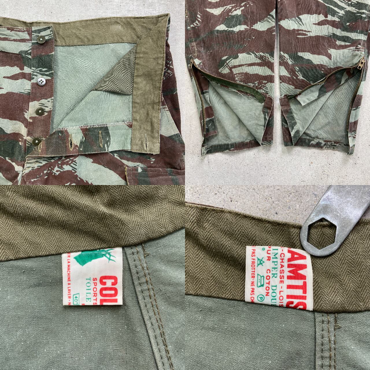 ■60~70年代 COLAMTISS ユーロ フレンチハンティングパンツ リザードカモ メンズW35 古着 60s 70s ヴィンテージ VINTAGE フランス コットンキャンバス 緑色 オリーブグリーン 迷彩柄 カモフラ【ミリタリーパンツ】/カーキグリーン 【サイズ】表記 不明(実寸約W35 L28) ※計測値をご確認ください。 ウエスト(平置き×2)…90 ワタリ幅…35 股上…29.5 股下…70 裾幅…17 【生産国】不明 【素材】コットン 【状態】数か所汚れやスレ等の使用感がございます。 画像にてご確認ください。 【c250504015】 ※古着は洗濯、検品などのケアを行っております。(新品・デッドストックは洗濯していません。) ※モニターの発色により実物と異なる場合がございます。予めご了承ください。 ※ 海外直輸入USED品になります。