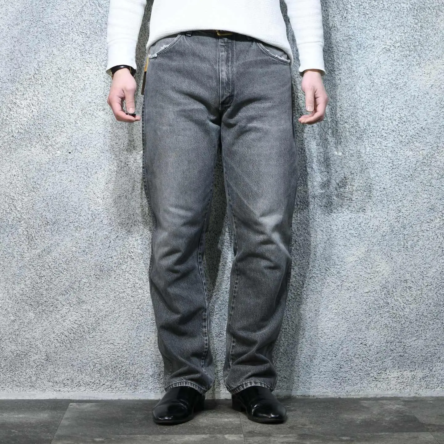 ウエスト84cm 総丈105cm 股下77cm わたり33cm 裾幅21cm fabric/cotton 着用画像 177cm/64kg Wranglerのサブレーベルとして知られる "rustler" LEVI’Sではなく、あえてこの辺りのブランドで 先染めブラックデニムを選んでみては どうでしょう。 先染め特有の色落ちだけでなく、 程よく穿き込まれた状態から生まれる雰囲気は 言わずもがな。 バギーシルエットの流行りとは逆行する1本ですが、 だからこそ、流行り廃りなど上辺に流されず 幅広いトップスと合わせることの出来る1本として おすすめです。 ※裾上げ等のレングス直しにつきましては、 別途料金が発生する場合がございます。 購入前に、必ずご連絡お願い致します。 また、購入後の直しには対応出来かねます。 ※撮影状況により、実物と多少色が異なる 場合がございます。 ※古着を取り扱っているため、気づかない汚れや ほつれがある場合がございます。 予めご了承ください。 ※サイズは着用感で選んでおり、表記サイズではございません。 古着 オーバーサイズ old vintage ヴィンテージ used 80's 90's アメリカ古着 ユーロ古着 メンズ レディース POLO RALPH LAUREN Eddie Bauer OLD GAP Eddie Bauer LANDS' END ランズエンド LLBean エルエルビーン オールドギャップ エディーバウアー ラルフローレン ブルックスブラザーズ Brooks Brothers ラングラー Wrangler などがお好きな方 #vintage #オーバーサイズ #old #used #90s #80s #古着 #ヴィンテージ #アメリカ古着 #ユーロ古着 #古着男子 #古着女子 #LLBean #エルエルビーン #EddieBauer #エディーバウアー #oldgap #オールドギャップ #LANDSEND #ランズエンド #NAUTICA #ノーティカ #ラルフローレン #POLORALPHLAUREN #ブルックスブラザーズ #BrooksBrothers #rustler #ブラックデニム #先染め #デニム #デニムパンツ