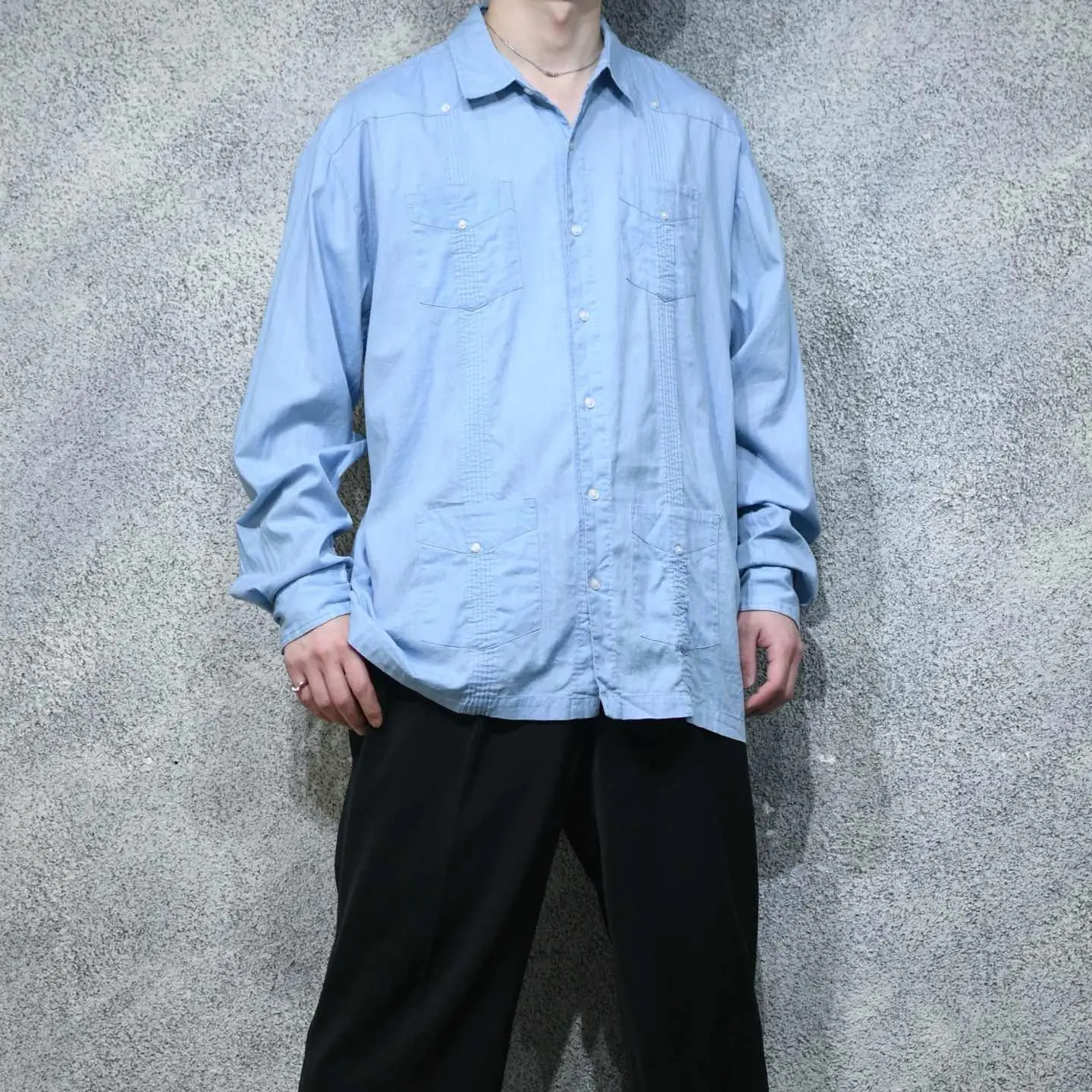 着丈77cm 肩幅57cm 身幅66cm 袖丈68cm fabric/cotton 着用画像 177cm/64kg 元々温暖な地域で着用されていたこともあり、 半袖キューバシャツと比べ、球数が一気に減る 長袖キューバシャツ。 爽やかな色合いと、程よくゆとりのある サイズ感から、1枚でさらっと着るのはもちろん、 ハーフパンツにTシャツ、そしてこのシャツを 羽織りとして。そんなコーデにも落とし込める アイテムではないでしょうか。 塩梅のいい個性を持ち合わせたキューバシャツ、 そしてその中でも長袖という差別化。 おすすめです。 ※撮影状況により、実物と多少色が異なる場合が ございます。 ※古着を取り扱っているため、気づかない汚れや ほつれ等がある場合がございます。 予めご了承ください。 ※サイズは着用感で選んでおり、表記サイズではございません。 古着 オーバーサイズ old vintage ヴィンテージ used 80's 90's アメリカ古着 ユーロ古着 メンズ レディース POLO RALPH LAUREN Eddie Bauer OLD GAP Eddie Bauer LANDS' END ランズエンド LLBean エルエルビーン オールドギャップ エディーバウアー ラルフローレン ブルックスブラザーズ Brooks Brothers 水色 シャツ グアテマラシャツ などがお好きな方 #vintage #オーバーサイズ #old #used #90s #80s #古着 #ヴィンテージ #アメリカ古着 #ユーロ古着 #古着男子 #古着女子 #LLBean #エルエルビーン #EddieBauer #エディーバウアー #oldgap #オールドギャップ #LANDSEND #ランズエンド #NAUTICA #ノーティカ #ラルフローレン #POLORALPHLAUREN #ブルックスブラザーズ #BrooksBrothers #グアテマラシャツ #キューバシャツ #デザインシャツ #長袖シャツ