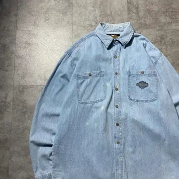 90s Harley-Davidson 刺繍ロゴ ブリーチ デニムシャツ