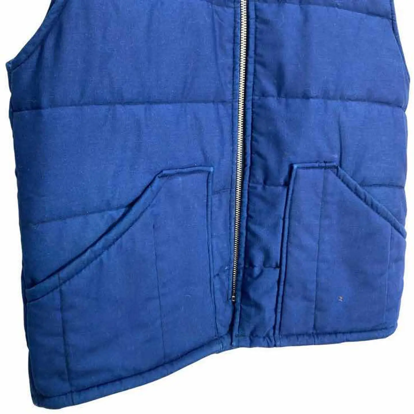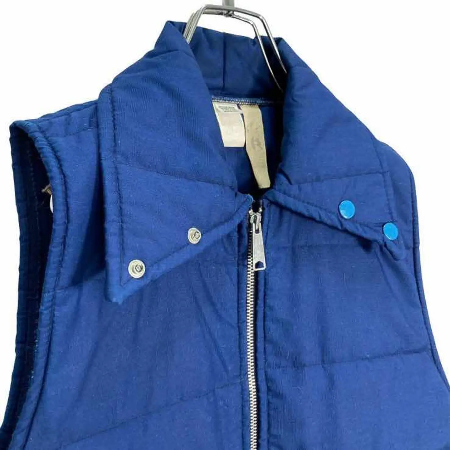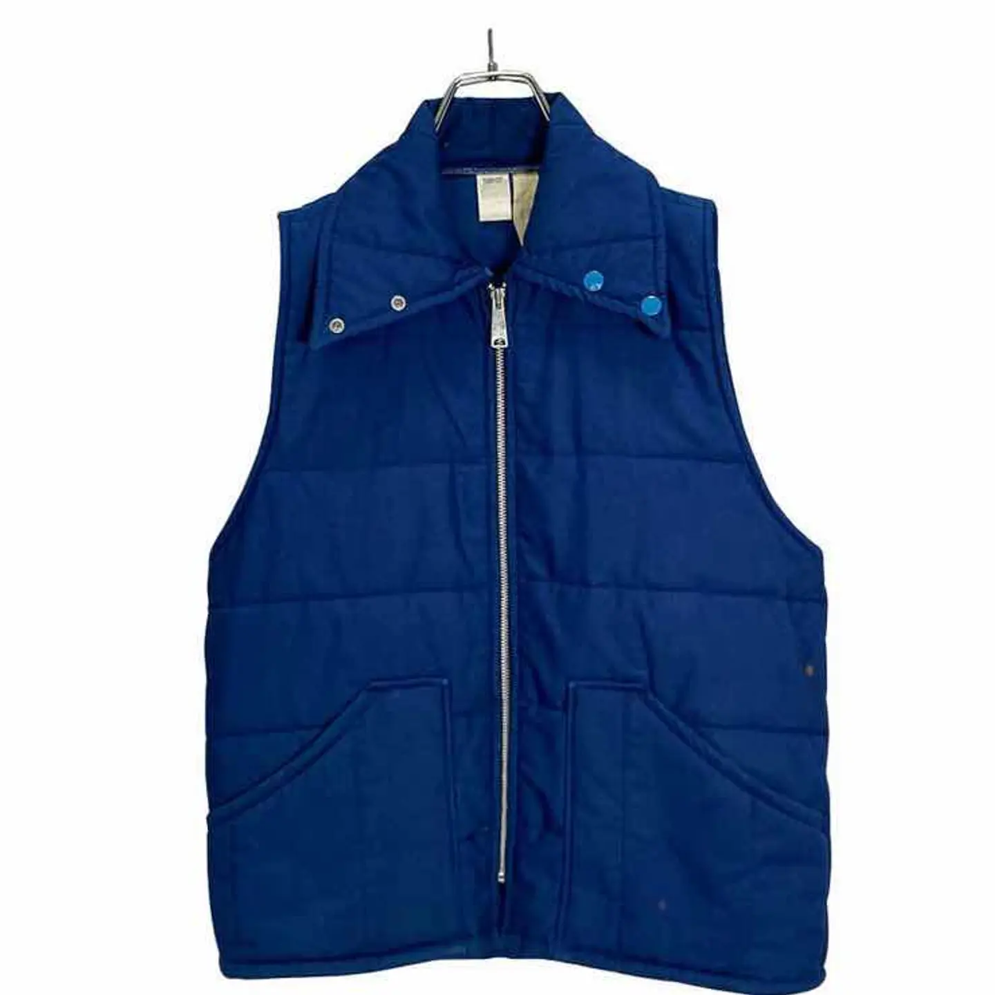 【商品名】70-80s quilting blue design vest 【ブランド】 【コンディション】C _____________________ 色味の綺麗なブルーが印象的な キルティングベスト。 存在感のある大きな襟がアクセントになるので ロンTeeやスウェットなどとの シンプルなスタイリングにもおすすめしたい1着 実寸はM-L程度あります。 サイズ: 着丈63 身幅51 肩幅35
