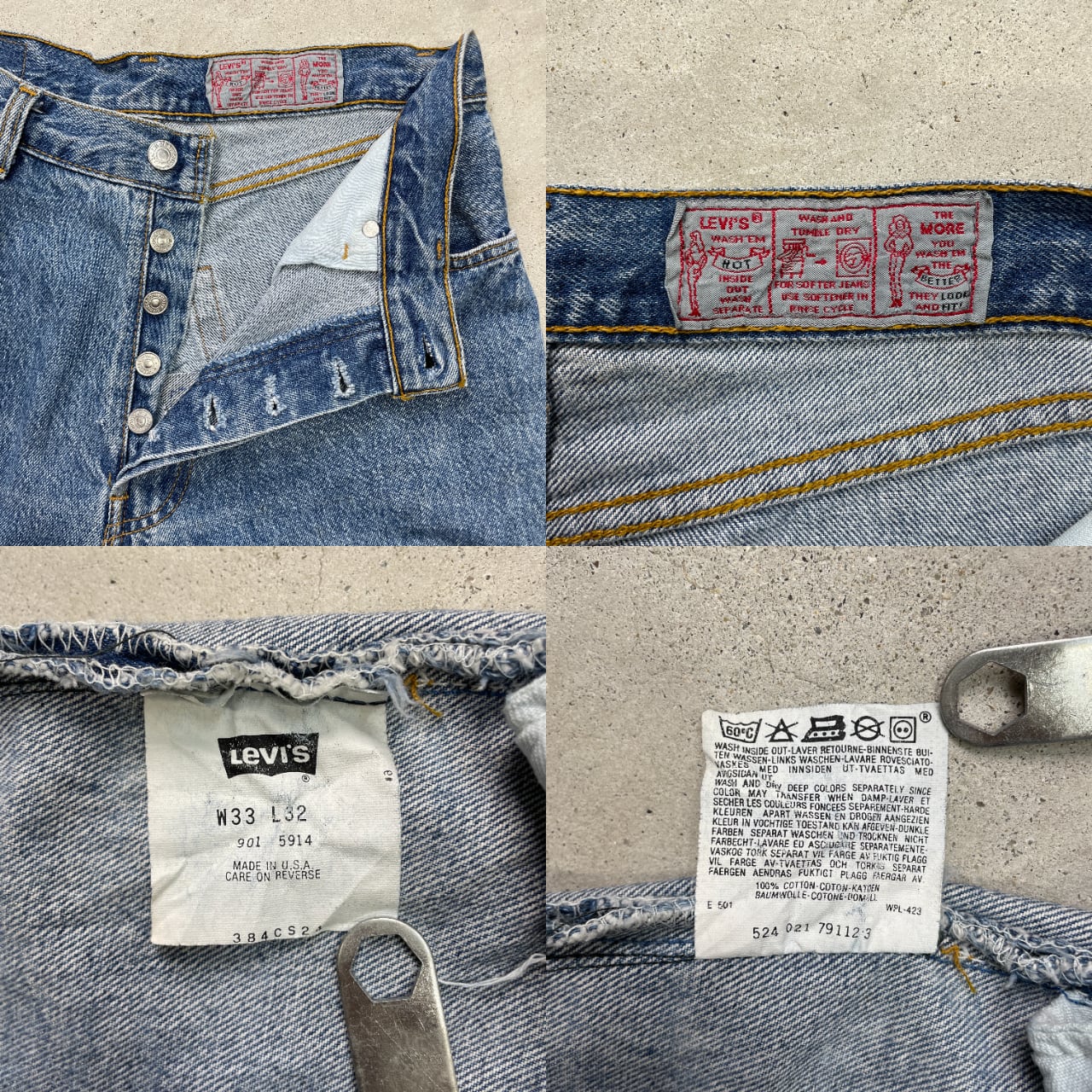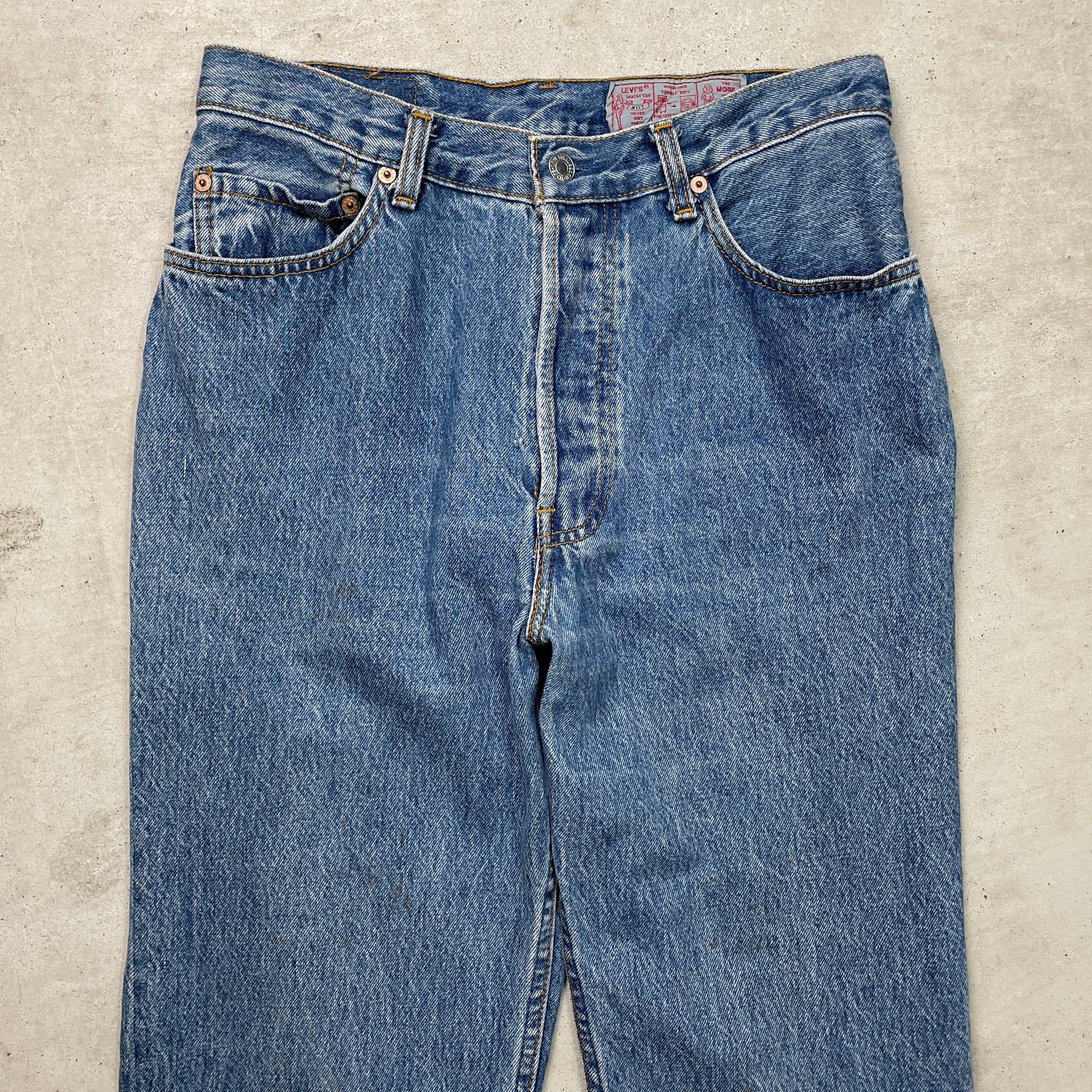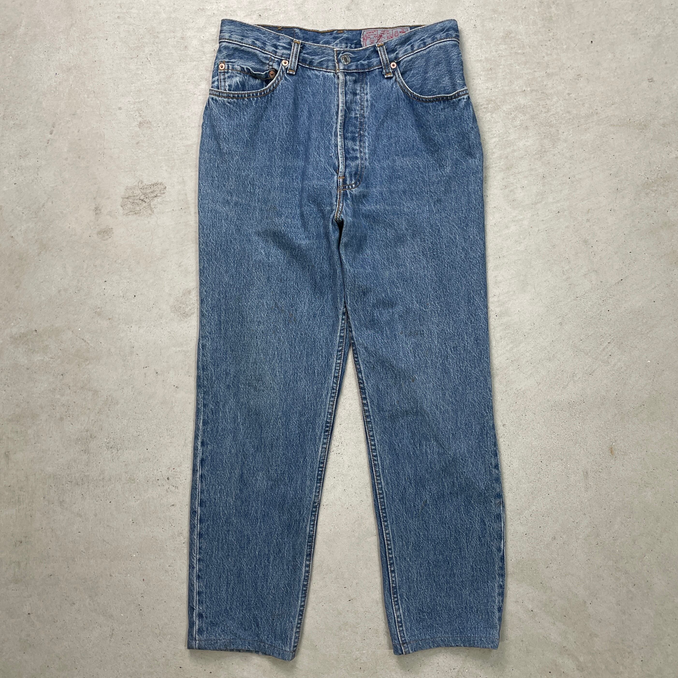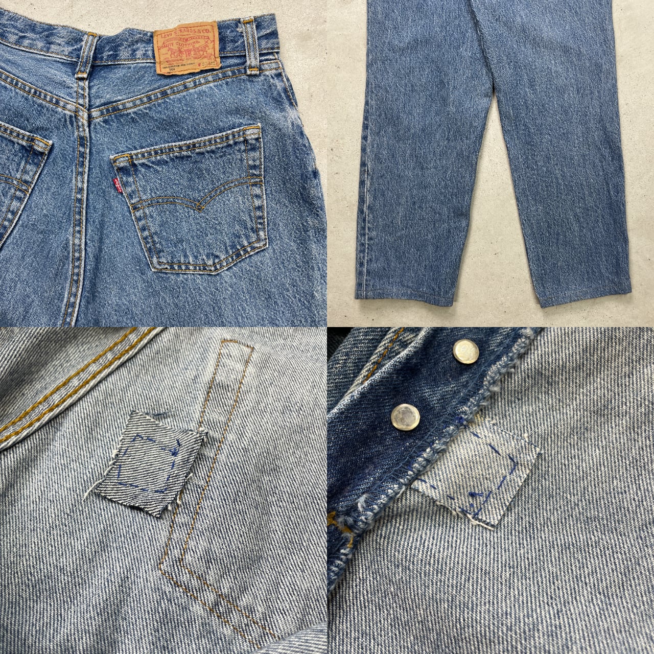 ■90年代 USA製 Levi's ユーロリーバイス 901 デニムパンツ ハイウエスト テーパード レディースW31 古着 90s ヴィンテージ VINTAGE ジーンズ 【デニムパンツ】/ブルー 【ブランド】Levi's リーバイス ボタン裏刻印:524 【サイズ】表記 W33 L32(実寸約W31 L29) 裾上げされています。 ※計測値をご確認ください。 ウエスト(平置き×2)…80 ワタリ幅…32.5 股上…31.5 股下...72.5 裾幅…18.5 【生産国】USA製 【素材】コットン100% 【状態】数か所薄汚れ、リペア等の使用感がございます。 画像にてご確認ください。 【C250515009】 ※古着は洗濯、検品などのケアを行っております。(新品・デッドストックは洗濯していません。) ※モニターの発色により実物と異なる場合がございます。予めご了承ください。 ※ 海外直輸入USED品になります。