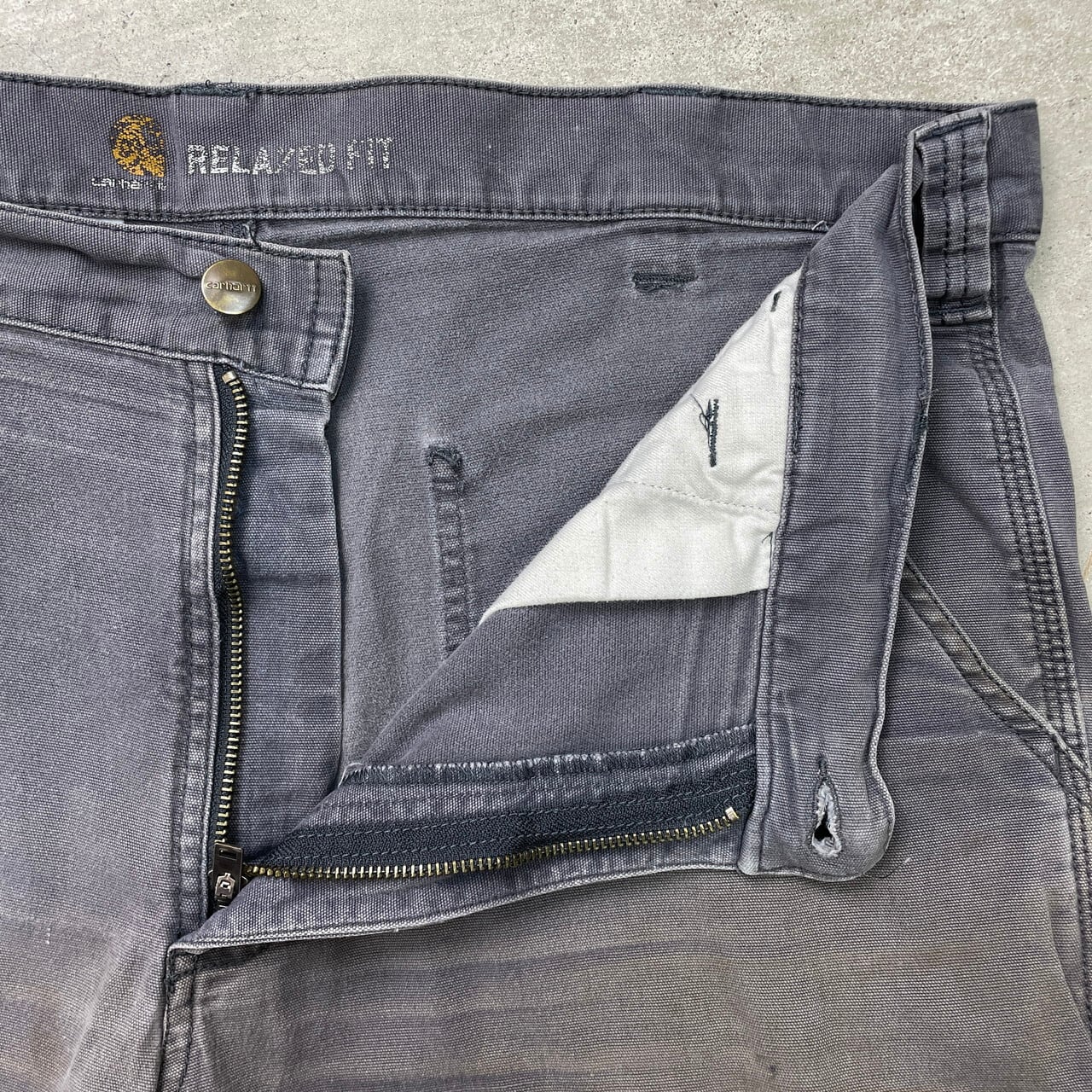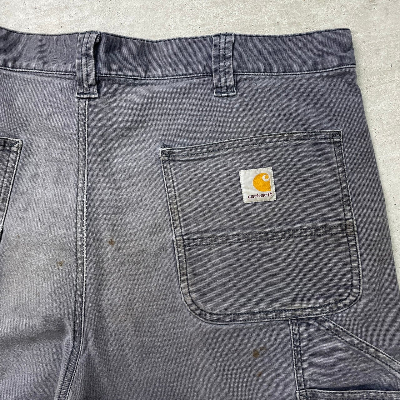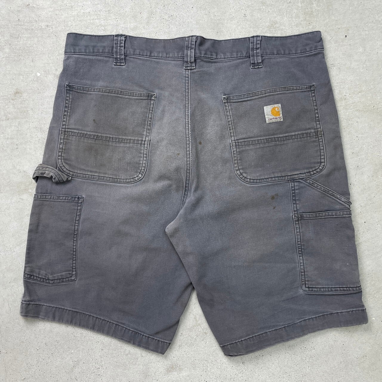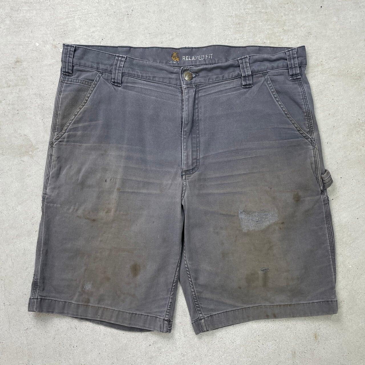 ■Carhartt カーハート ダックワークショーツ ハーフパンツ メンズW38 古着 ペインターショーツ フェード ナス紺 【ショートパンツ】/パープル ◎柔らかいダック地です。 【ブランド】Carhartt カーハート 【サイズ】表記 38 ※計測値をご確認ください。 総丈...53.5(サイド計測) ウエスト(平置き×2)…100 ワタリ幅…34.5 股上…30.5 股下…26.5 裾幅…29.5 【生産国】インド製 【素材】コットン98% エラステン2% 【状態】全体的にフェードやリペア、汚れ、シミ、ダメージが御座います。 画像にてご確認ください。 【c250514062】 ※古着は洗濯、検品などのケアを行っております。(新品・デッドストックは洗濯していません。) ※モニターの発色により実物と異なる場合がございます。予めご了承ください。 ※ 海外直輸入USED品になります。