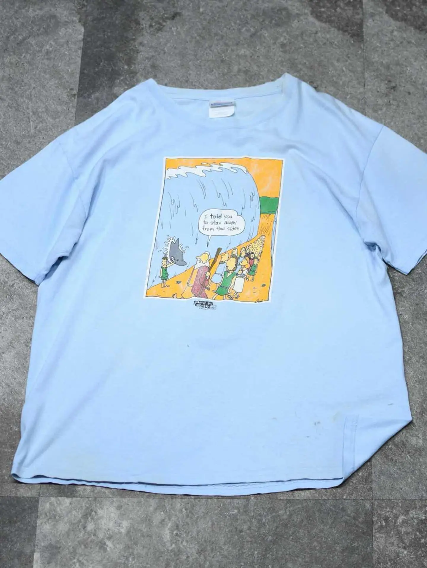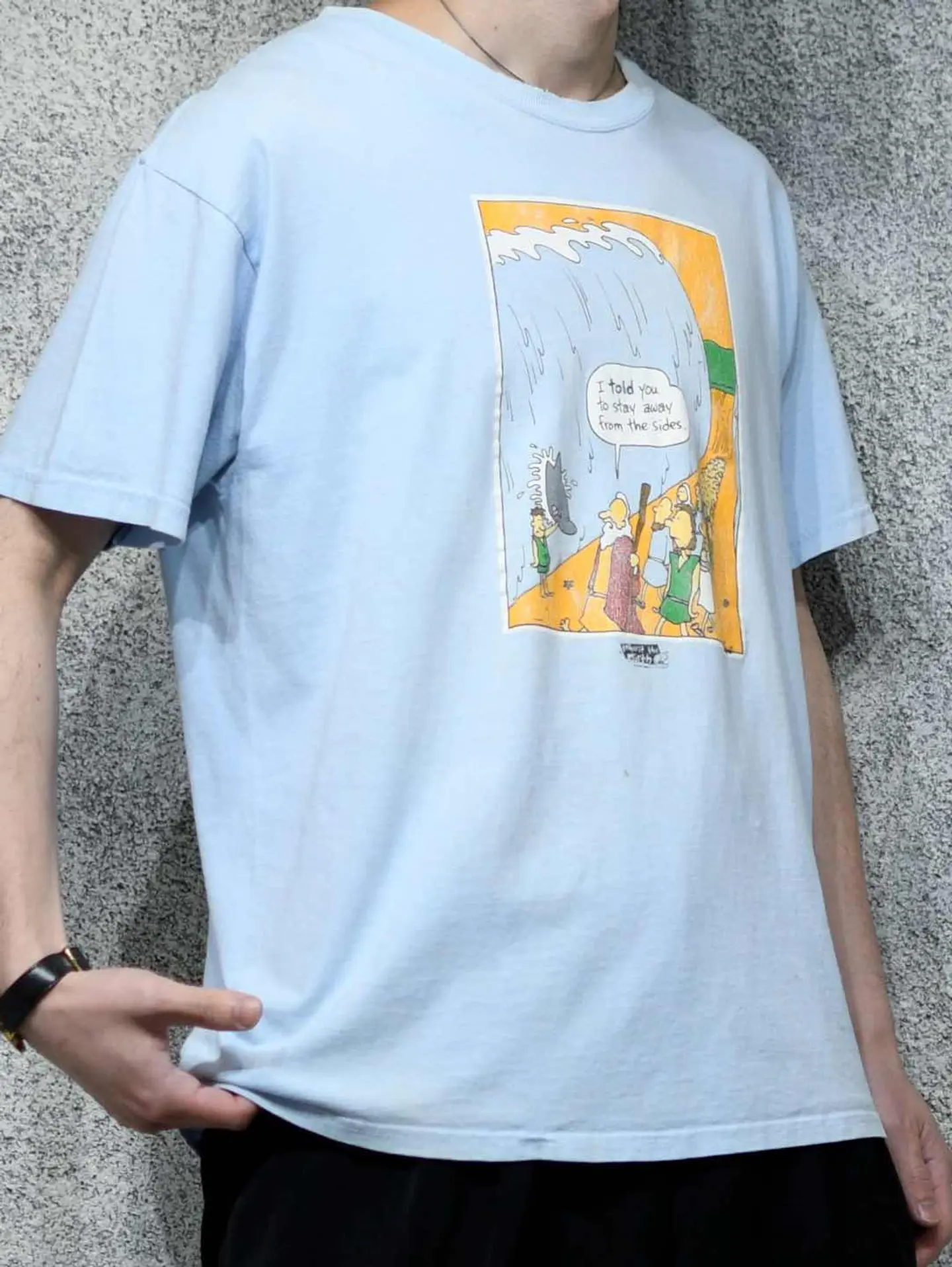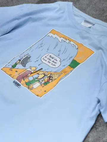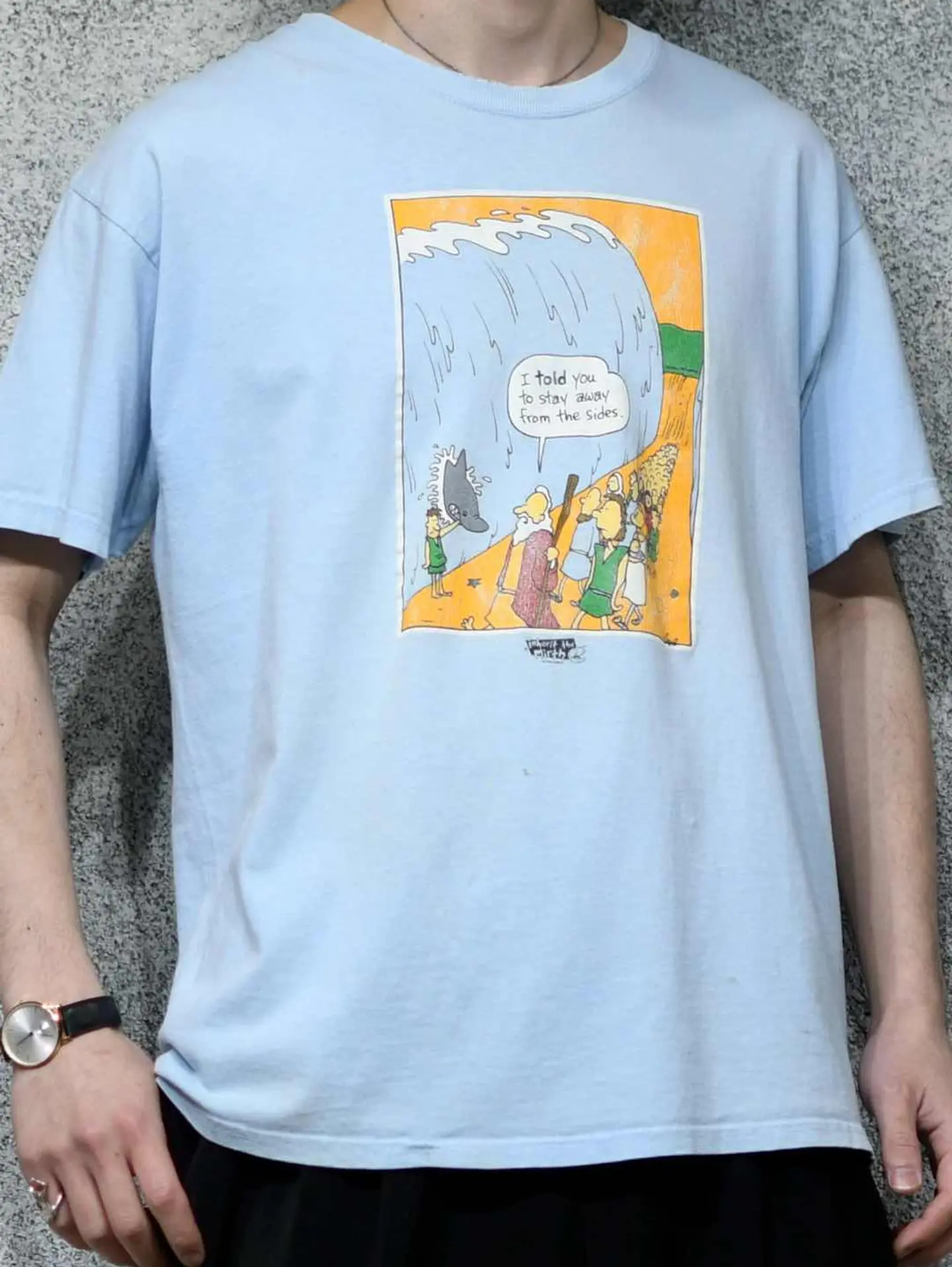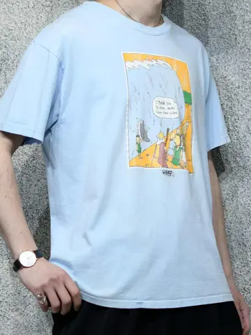 着丈68cm 肩幅56cm 身幅58cm 袖丈21cm fabric/cotton 着用画像 177cm/64kg "だから真ん中を歩けって言ったのに" モーセの十戒にユーモアを添えたプリント。 黒や白のボディのTシャツと比べ、必然的に 良いプリントの個体が減るカラーTシャツ。 中でもこちらは推しな1枚で、Tシャツに求める "個性"や"良さ"が詰まった1着ではないでしょうか。 ※撮影状況により、実物と多少色が異なる場合が ございます。 ※古着を取り扱っているため、気づかない汚れや ほつれ等がある場合がございます。 予めご了承ください。 ※サイズは着用感で選んでおり、表記サイズではございません。 古着 オーバーサイズ old vintage ヴィンテージ used 80's 90's アメリカ古着 ユーロ古着 メンズ レディース POLO RALPH LAUREN Eddie Bauer OLD GAP Eddie Bauer LANDS' END ランズエンド LLBean エルエルビーン オールドギャップ エディーバウアー ラルフローレン ブルックスブラザーズ Brooks Brothers 水色 青 ブルー 半袖Tシャツ Tシャツ などがお好きな方 #vintage #オーバーサイズ #old #used #90s #80s #古着 #ヴィンテージ #アメリカ古着 #ユーロ古着 #古着男子 #古着女子 #LLBean #エルエルビーン #EddieBauer #エディーバウアー #oldgap #オールドギャップ #LANDSEND #ランズエンド #NAUTICA #ノーティカ #ラルフローレン #POLORALPHLAUREN #ブルックスブラザーズ #BrooksBrothers #半袖Tシャツ #プリントTシャツ #Tシャツ #モーゼの十戒 #カラーTシャツ