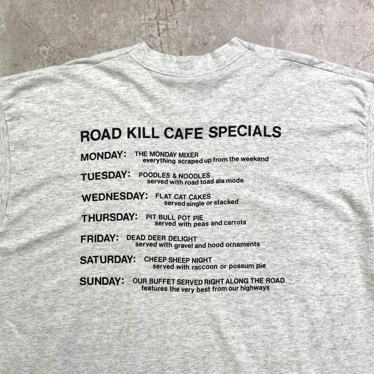 ■90年代 USA製 ROAD KILL CAFE ロードキルカフェ 企業ロゴプリントTシャツ メンズ2XL 古着 90s ヴィンテージ VINTAGE アドバタイジング バックプリント 両面プリント ビッグサイズ 大きいサイズ ライトグレー 灰色【Tシャツ】/グレー 【ブランド】FRUIT OF THE LOOM フルーツオブザルーム 【サイズ】 表記 XXL ※計測値をご確認ください 着丈…77 身幅…68 肩幅…61 袖丈…21 【生産国】USA製 【素材】コットン50% ポリエステル50% 【状態】フロント裾付近や脇部分に薄汚れがございます。 画像にてご確認ください。 【c250511155】 ※古着は洗濯、検品などのケアを行っております。(新品・デッドストックは洗濯していません。) ※モニターの発色により実物と異なる場合がございます。予めご了承ください。 ※ 海外直輸入USED品になります。