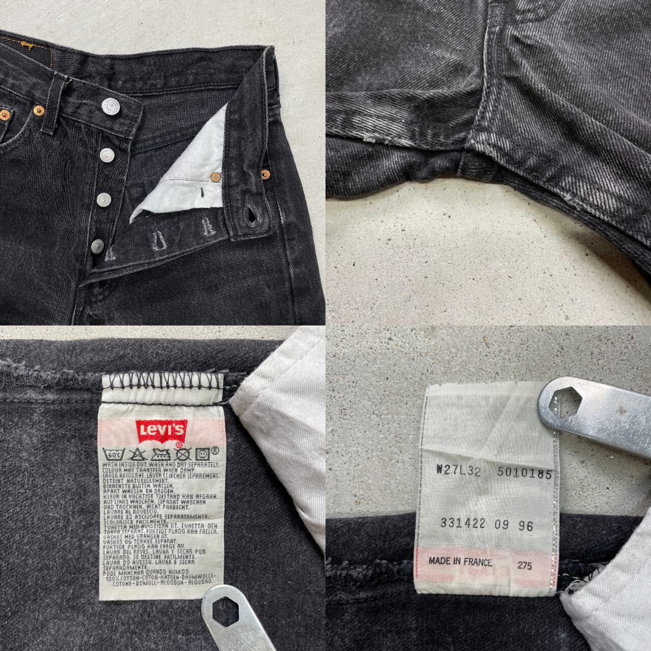 ■90年代 フランス製 Levi's ユーロリーバイス 501 ブラックデニムパンツ ストレート レディースW27 古着 90s VINTAGE ヴィンテージ 黒 【デニムパンツ】/ブラック 【ブランド】Levi's リーバイス ボタン裏刻印:275 【サイズ】表記 W27 L32 ※計測値をご確認ください。 ウエスト(平置き×2)…68 ワタリ幅…29 股上…27 股下…81.5 裾幅…18 【生産国】フランス製 【素材】コットン100% 【状態】多少のスレ等の使用感はございますが、 目立った汚れやダメージ等は無くまだまだ長く愛用していただけます。 画像にてご確認ください。 【c250511032】 ※古着は洗濯、検品などのケアを行っております。(新品・デッドストックは洗濯していません。) ※モニターの発色により実物と異なる場合がございます。予めご了承ください。 ※ 海外直輸入USED品になります。