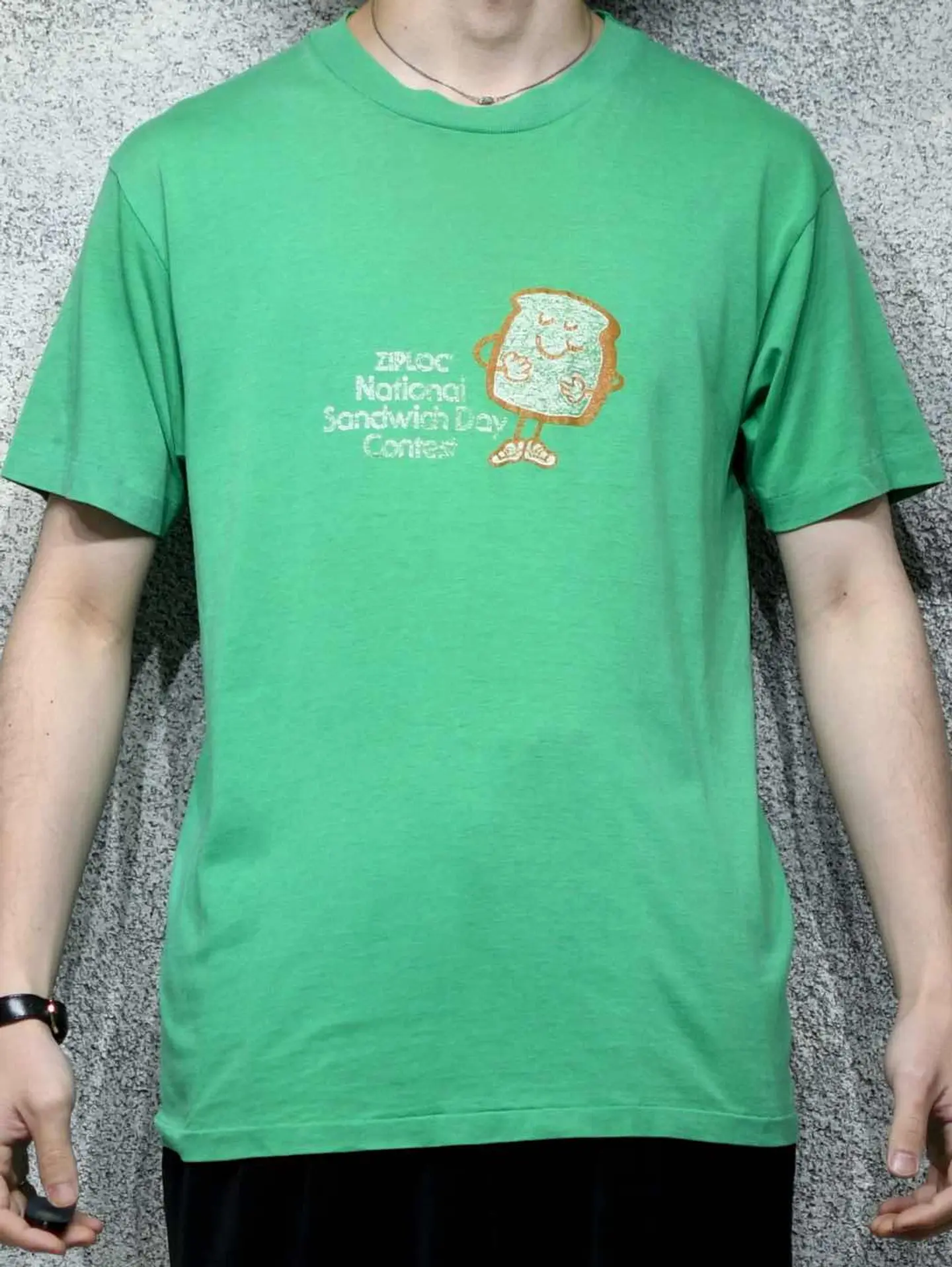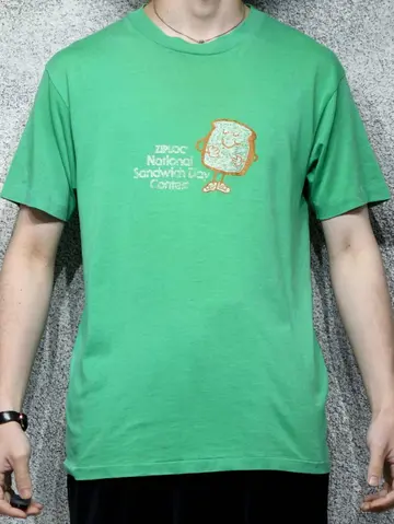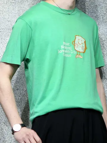 着丈69cm 肩幅53cm 身幅53cm 袖丈22cm fabric/cotton・poly made in USA 着用画像 177cm/64kg ジップロック主催のアメリカで1番の サンドウィッチを決める大会で作られたTシャツ。 掠れたプリントに可愛いキャラクター、 年代を感じるボディ。 心踊るTシャツとして、良いプリントが少ない カラーTシャツとして。 おすすめです。 ※撮影状況により、実物と多少色が異なる場合が ございます。 ※古着を取り扱っているため、気づかない汚れや ほつれ等がある場合がございます。 予めご了承ください。 ※サイズは着用感で選んでおり、表記サイズではございません。 古着 オーバーサイズ old vintage ヴィンテージ used 80's 90's アメリカ古着 ユーロ古着 メンズ レディース POLO RALPH LAUREN Eddie Bauer OLD GAP Eddie Bauer LANDS' END ランズエンド LLBean エルエルビーン オールドギャップ エディーバウアー ラルフローレン ブルックスブラザーズ Brooks Brothers Tシャツ 緑 グリーン 半袖Tシャツ ziploc カラーTシャツ Tシャツ などがお好きな方 #vintage #オーバーサイズ #old #used #90s #80s #古着 #ヴィンテージ #アメリカ古着 #ユーロ古着 #古着男子 #古着女子 #LLBean #エルエルビーン #EddieBauer #エディーバウアー #oldgap #オールドギャップ #LANDSEND #ランズエンド #NAUTICA #ノーティカ #ラルフローレン #POLORALPHLAUREN #ブルックスブラザーズ #BrooksBrothers #カラーTシャツ #Tシャツ #半袖Tシャツ #プリントTシャツ #シングルステッチ