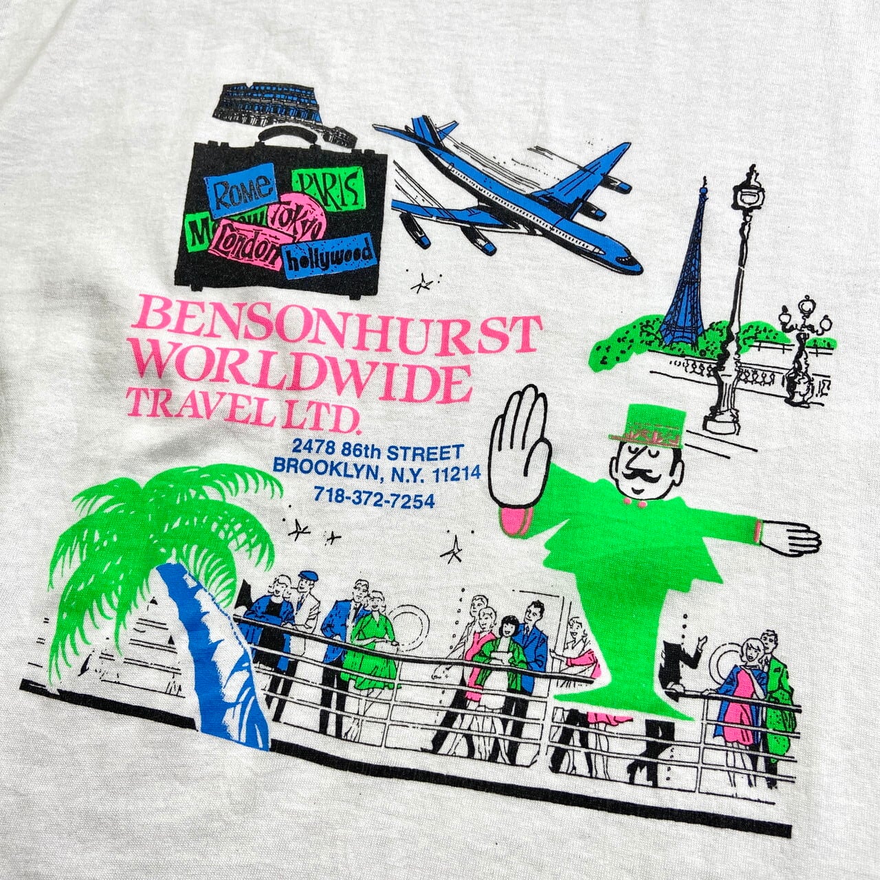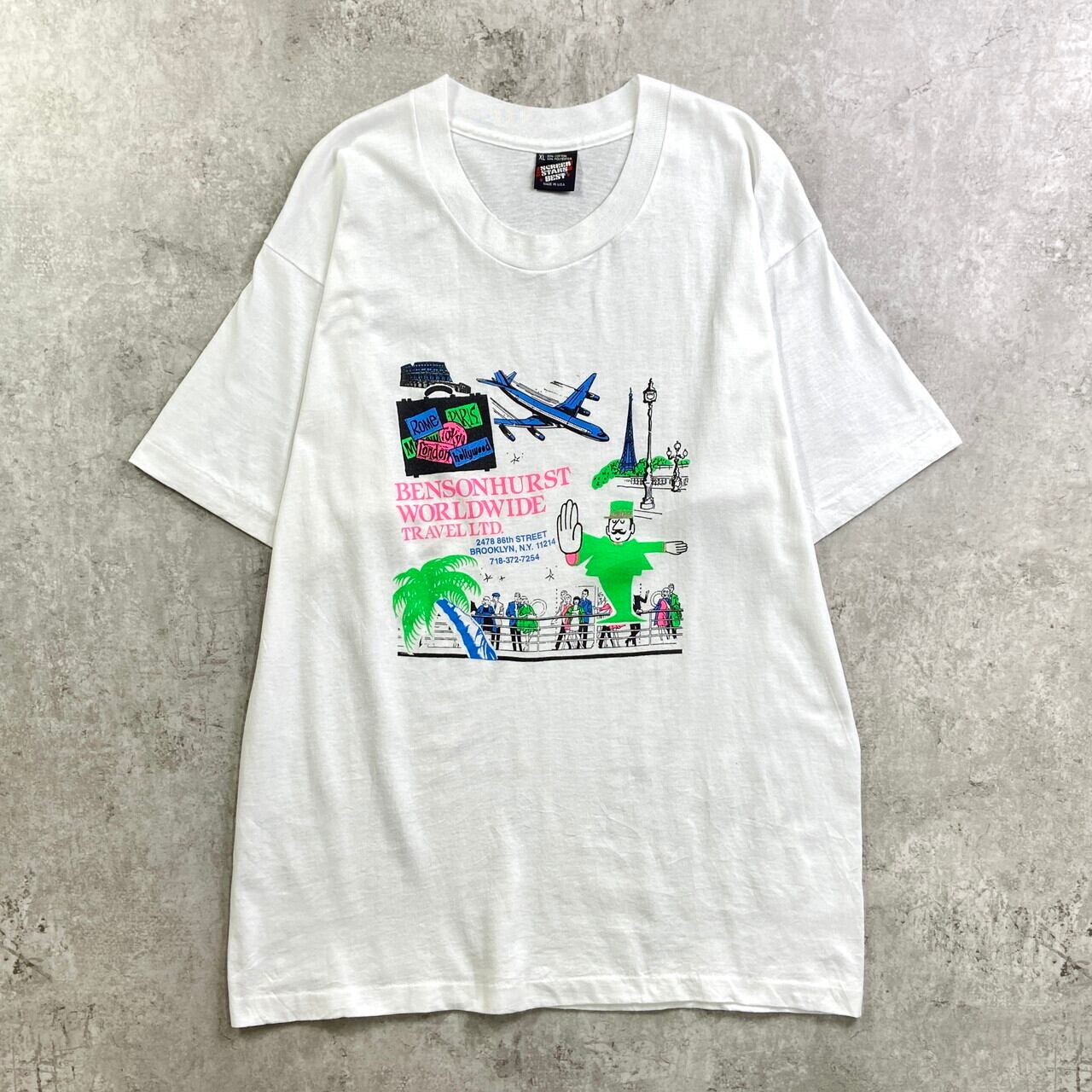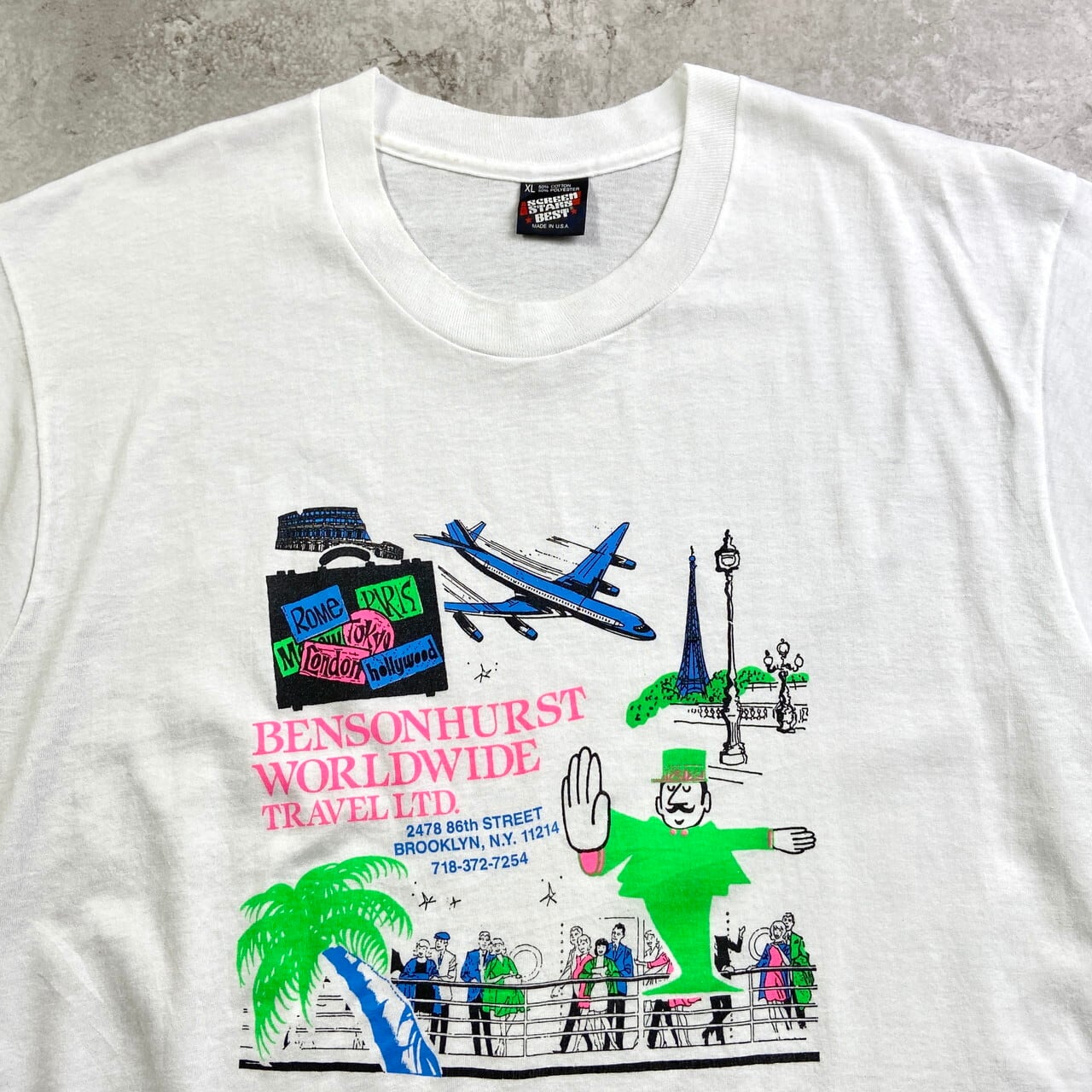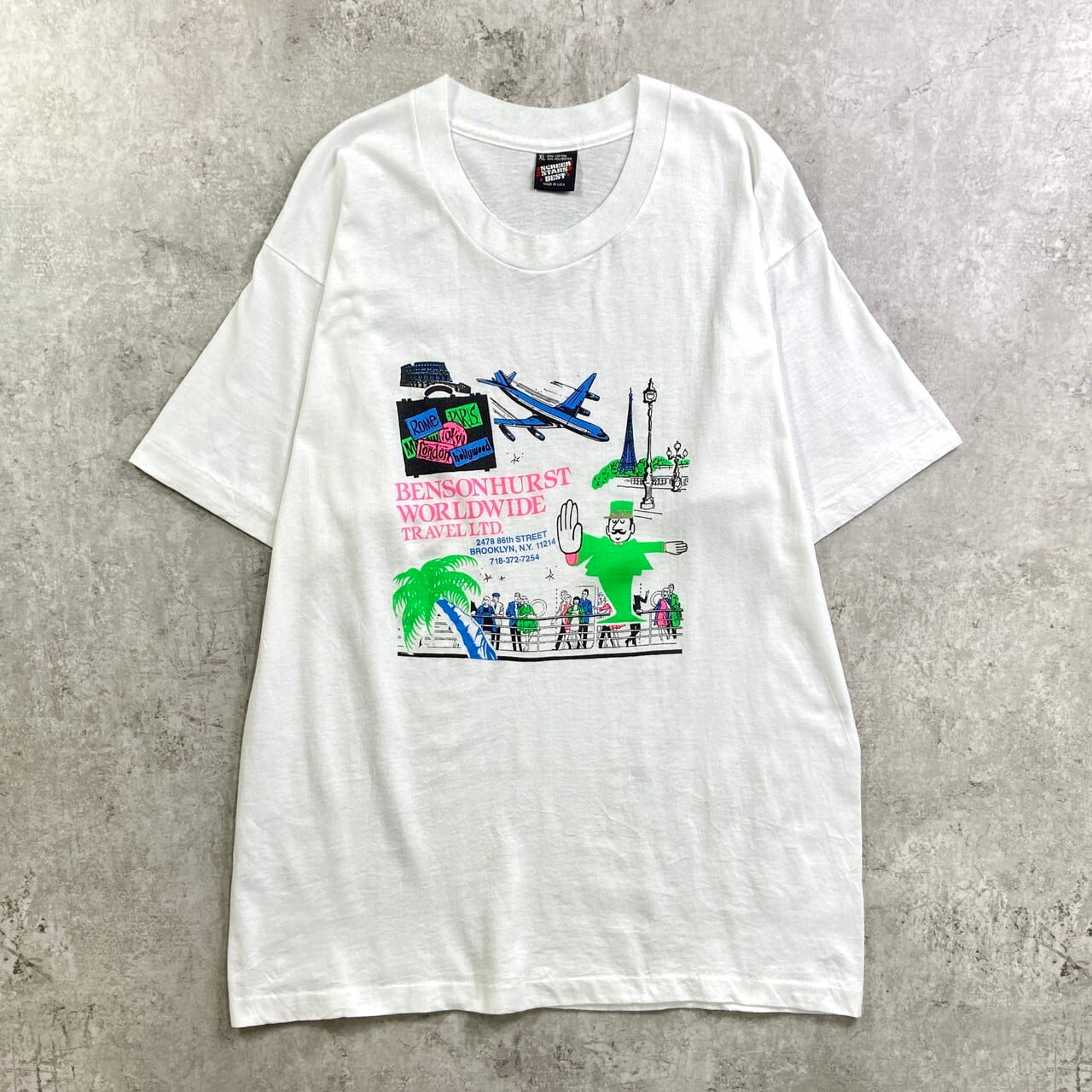 ■90年代 BENSONHURST WORLDWIDE TRAVEL LTD プリントTシャツ メンズL相当 古着 90s ヴィンテージ VINTAGE シングルステッチ 白【Tシャツ】/ホワイト 【ブランド】SCREENSTARS BEST スクリーンスターズ ベスト 【サイズ】表記 XL(着用感メンズL相当) ※計測値をご確認ください。 着丈…71.5 身幅…56 肩幅…52 袖丈…20.5 【生産国】USA製 【素材】コットン50% ポリエステル50% 【状態】 数か所汚れがございます。 画像にてご確認ください。 【c250513011】 ※古着は洗濯、検品などのケアを行っております。(新品・デッドストックは洗濯していません。)