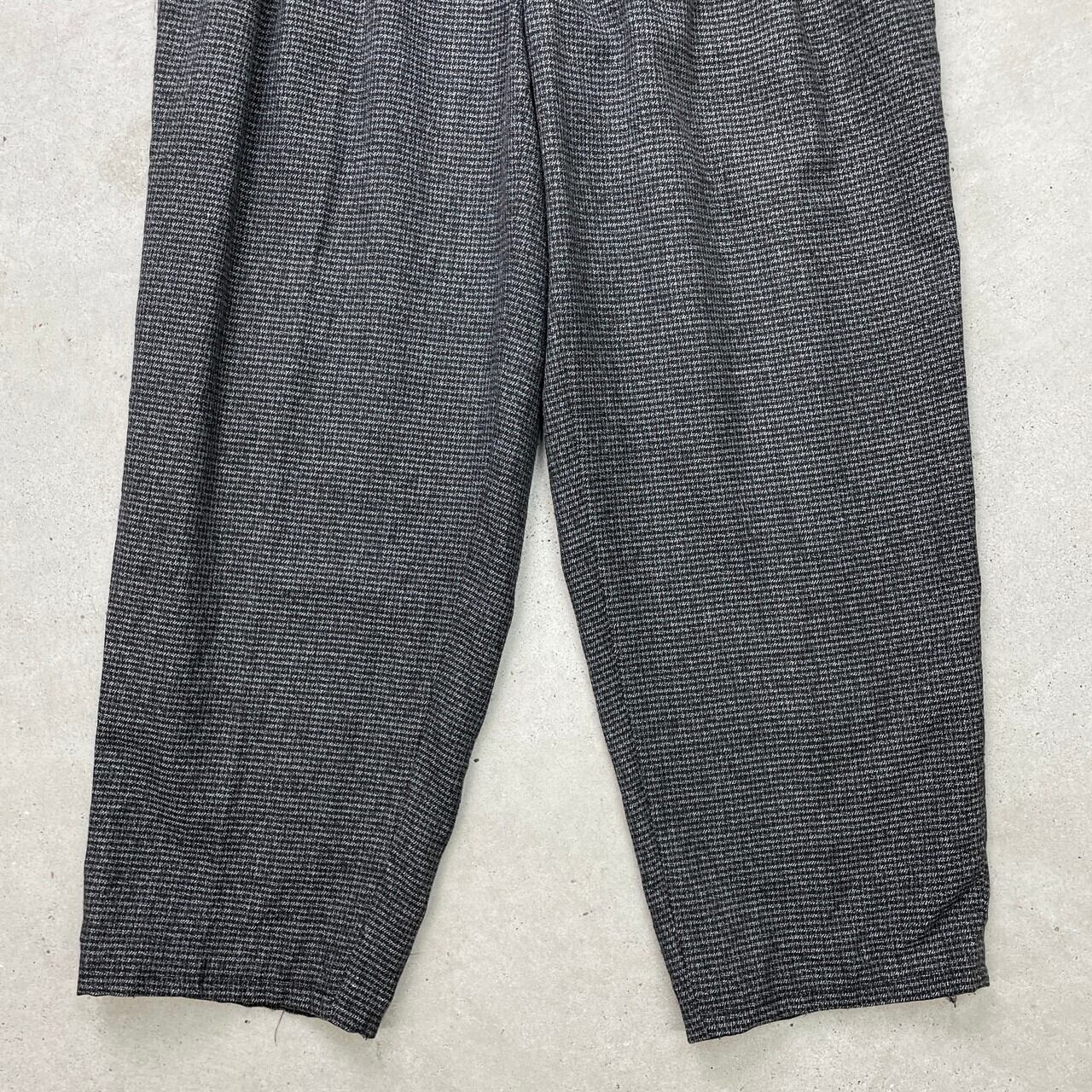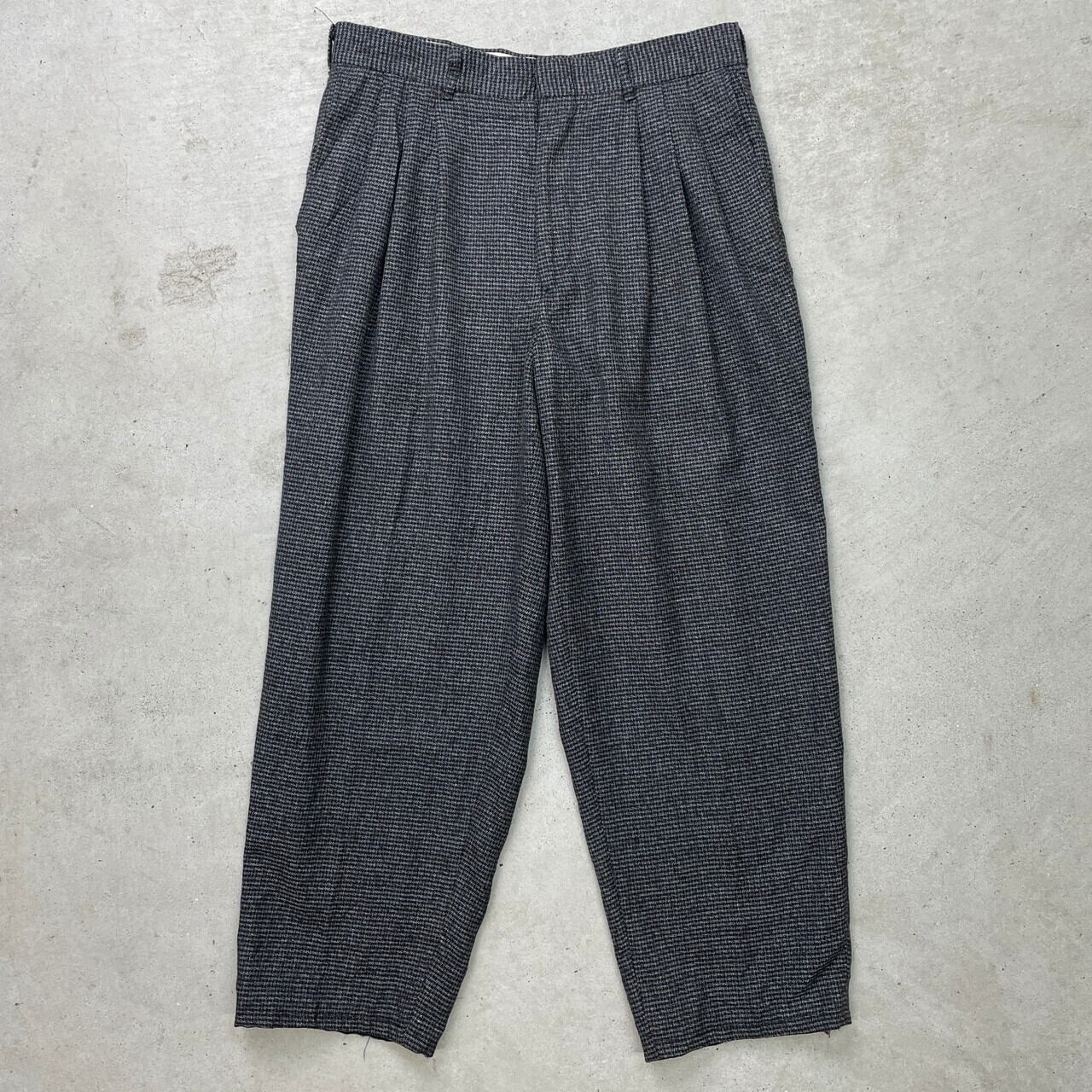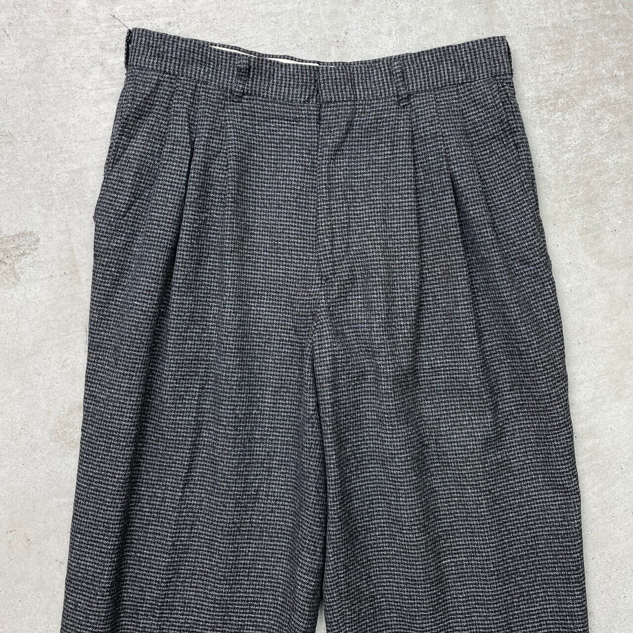 ■80年代 USA製 CITY STREETS ワイドスラックス 3タック チェックパンツ メンズW30 古着 80s ヴィンテージ VINTAGE ブラック ホワイト グレー 黒 白 灰色【スラックス,スタプレ】/マルチカラー ◎サラッとしたポリエステル×レーヨン生地です。 【サイズ】表記 W30(実寸約L26) ※計測値をご確認ください。 ウエスト(平置き×2)…78 ワタリ幅…35.5 股上…29 股下…65 裾幅…20.5 【生産国】USA製 【素材】ポリエステル50% レーヨン50% 【状態】左裾裏に縫いしろほつれ等多少の使用感はございますが、 目立った汚れやダメージ等は無くまだまだ長く愛用していただけます。 画像にてご確認ください。 【c250511013】 ※古着は洗濯、検品などのケアを行っております。(新品・デッドストックは洗濯していません。) ※モニターの発色により実物と異なる場合がございます。予めご了承ください。 ※ 海外直輸入USED品になります。