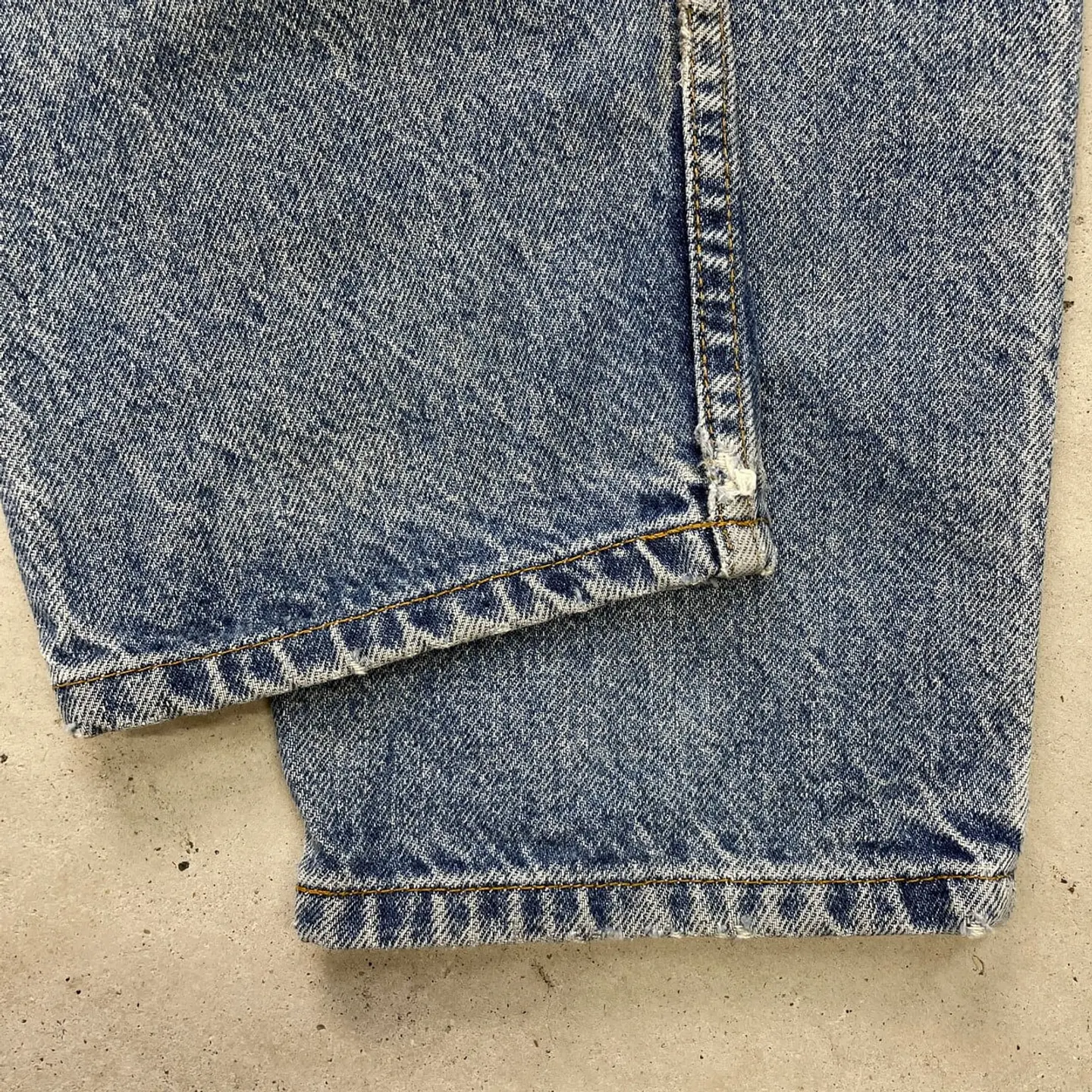 ■90年代 オレンジタブ Levi's リーバイス 550 テーパードデニムパンツ メンズW34 古着 90s ヴィンテージ VINTAGE ジーンズ ワイドデニム バギーデニム【デニムパンツ】/ブルー 【ブランド】Levi's リーバイス ボタン裏刻印:223M 【サイズ】表記 W34 L32 ※計測値をご確認ください。 ウエスト(平置き×2)…84 ワタリ幅…34 股上…31 股下...81 裾幅…17.5 【生産国】メキシコ製 【素材】コットン100% 【状態】全体的に汚れ等の使用感がございます。 画像にてご確認ください。 【c250509019】 ※古着は洗濯、検品などのケアを行っております。(新品・デッドストックは洗濯していません。) ※モニターの発色により実物と異なる場合がございます。予めご了承ください。 ※ 海外直輸入USED品になります。