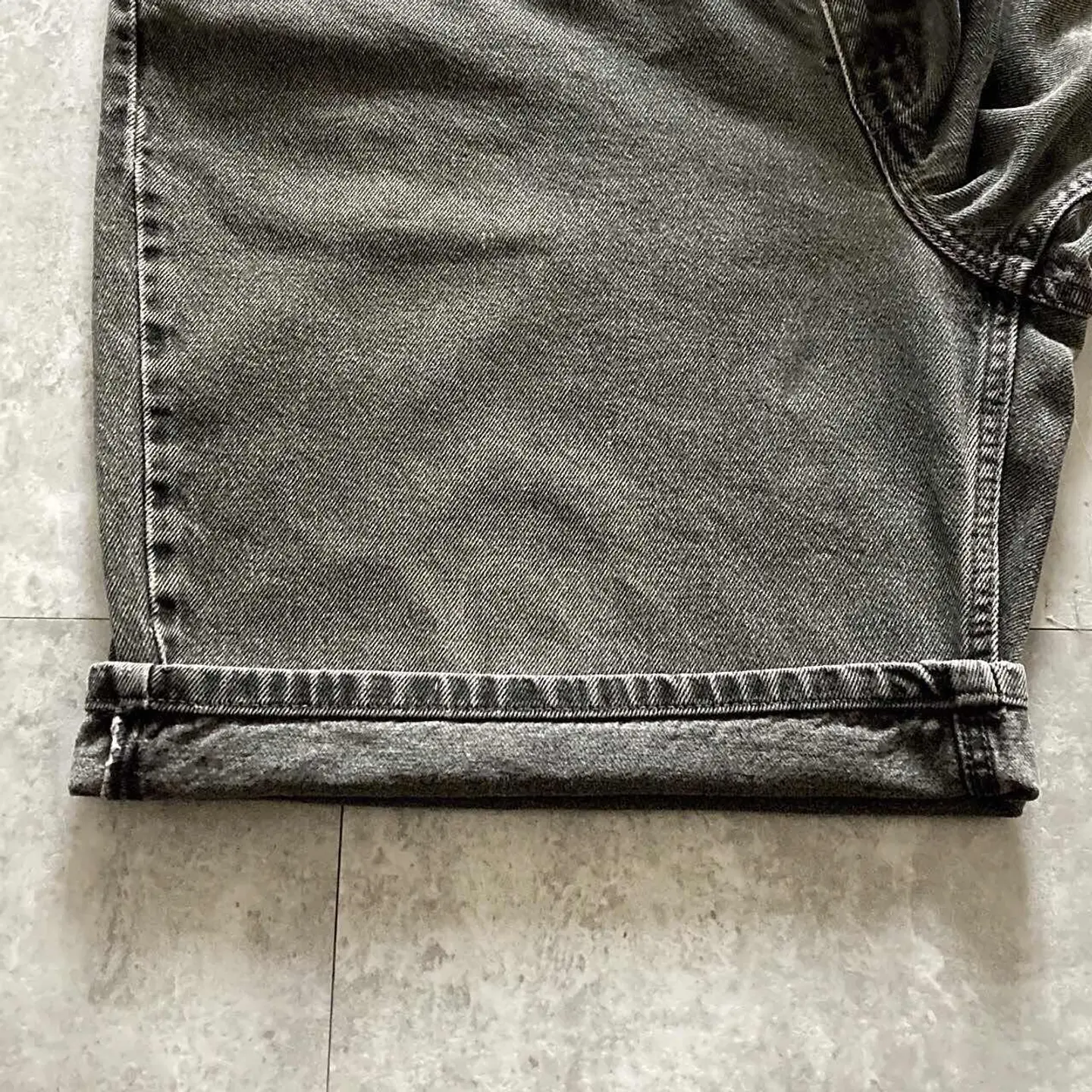 □Size□ 表記→W42 L00 実寸↓ 股上 : 34 股下 : 24 ワタリ幅 : 38.5 裾幅 : 33 ウエスト : 54×2 (cm) □Colour□ ・先染めブラック □Material□ ・100%コットン □Condition□ ・裾に若干の擦れた傷あり ・ウエストに若干の色抜けあり □Caution□ ・当店で取り扱っているアイテムは全て「古着」となっております。そのため、多少の擦れやほつれ、色あせや汚れ等が見られる場合がございます。新品同様の完璧なお品物をお求めの方は当店をご利用されないよう宜しくお願いします。 ・購入された商品につきましては、購入日から起算して「72時間以内の発送」とさせて頂きます。お急ぎの場合はオンラインストアの問い合わせフォームよりご連絡ください。可能な限り対応させて頂きます。 ・購入されら商品は基本的に「お客様都合での返品&キャンセル不可」となっております。決済が確定した時点で注文の取り消し等は不可のとなりますので、よくお考えの上購入検討の方をお願い致します。 【A-5355】