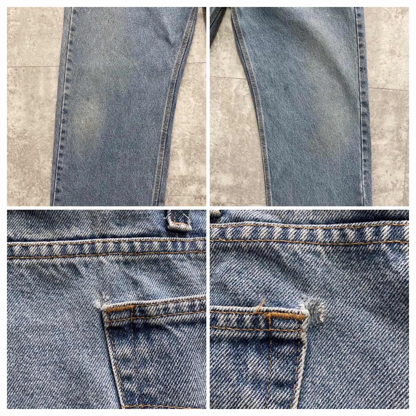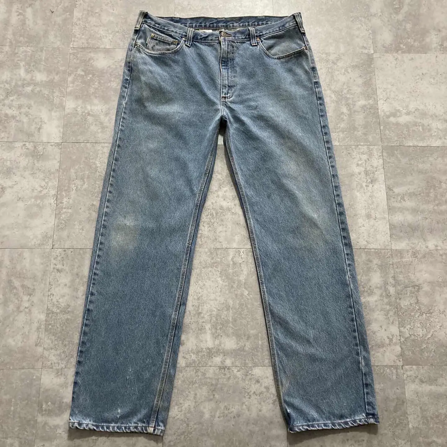 □Size□ 表記→40×34 実寸↓ 股上 : 31 股下 : 85.5 ワタリ幅 : 34 裾幅 : 22.5 ウエスト : 51.5×2 (cm) □Colour□ ・デニム紺 □Material□ ・コットン100% □Condition□ ・前ポケット.太もも.膝.裾付近に汚れあり ・後ポケット.裾付近に擦れた傷あり □Caution□ ・当店で取り扱っているアイテムは全て「古着」となっております。そのため、多少の擦れやほつれ、色あせや汚れ等が見られる場合がございます。新品同様の完璧なお品物をお求めの方は当店をご利用されないよう宜しくお願いします。 ・購入された商品につきましては、購入日から起算して「72時間以内の発送」とさせて頂きます。お急ぎの場合はオンラインストアの問い合わせフォームよりご連絡ください。可能な限り対応させて頂きます。 ・購入されら商品は基本的に「お客様都合での返品&キャンセル不可」となっております。決済が確定した時点で注文の取り消し等は不可のとなりますので、よくお考えの上購入検討の方をお願い致します。 【A-5358】
