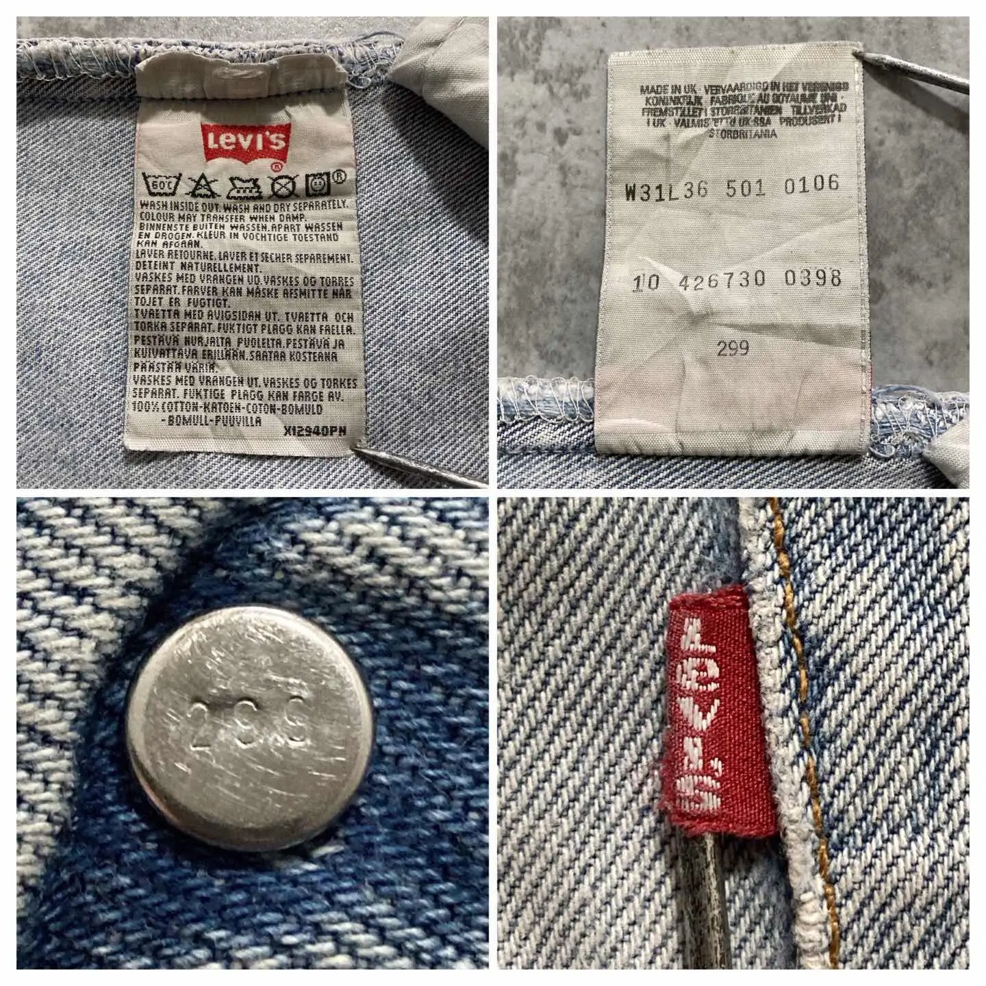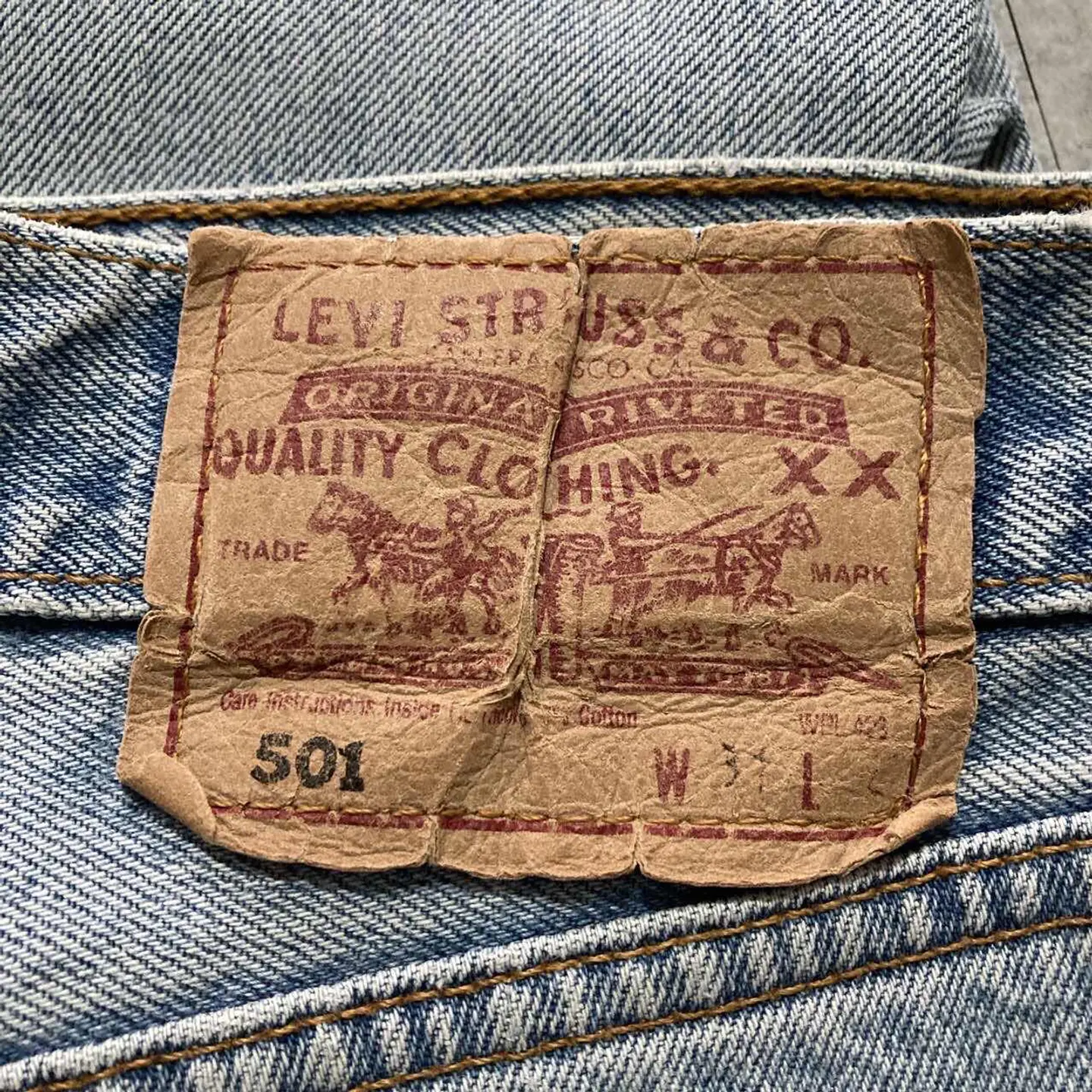 【W30 L34】Levis 501 PREMIUM レザーパッチ ボタンフライ 濃紺 デニムパンツ