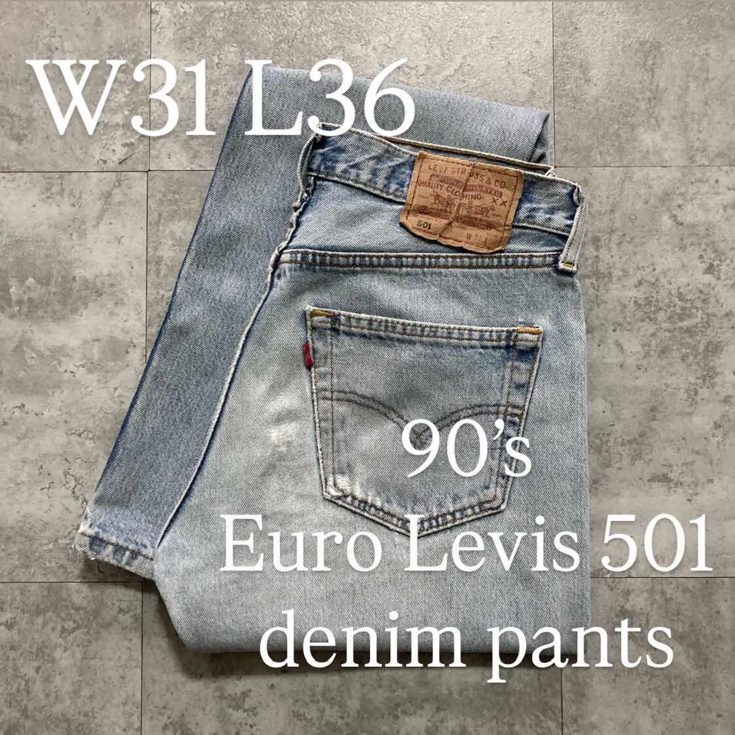 □Size□ 表記→W31 L36 実寸↓ 股上 : 27.5 股下 : 89 ワタリ幅 : 29.5 裾幅 : 19 ウエスト : 39.5×2 (cm) □Colour□ ・デニム紺 □Material□ ・100%コットン □Condition□ ・前後ポケット.膝.裾に擦れた傷あり ・太もも.膝に汚れあり □Caution□ ・当店で取り扱っているアイテムは全て「古着」となっております。そのため、多少の擦れやほつれ、色あせや汚れ等が見られる場合がございます。新品同様の完璧なお品物をお求めの方は当店をご利用されないよう宜しくお願いします。 ・購入された商品につきましては、購入日から起算して「72時間以内の発送」とさせて頂きます。お急ぎの場合はオンラインストアの問い合わせフォームよりご連絡ください。可能な限り対応させて頂きます。 ・購入されら商品は基本的に「お客様都合での返品&キャンセル不可」となっております。決済が確定した時点で注文の取り消し等は不可のとなりますので、よくお考えの上購入検討の方をお願い致します。 【A-5363】