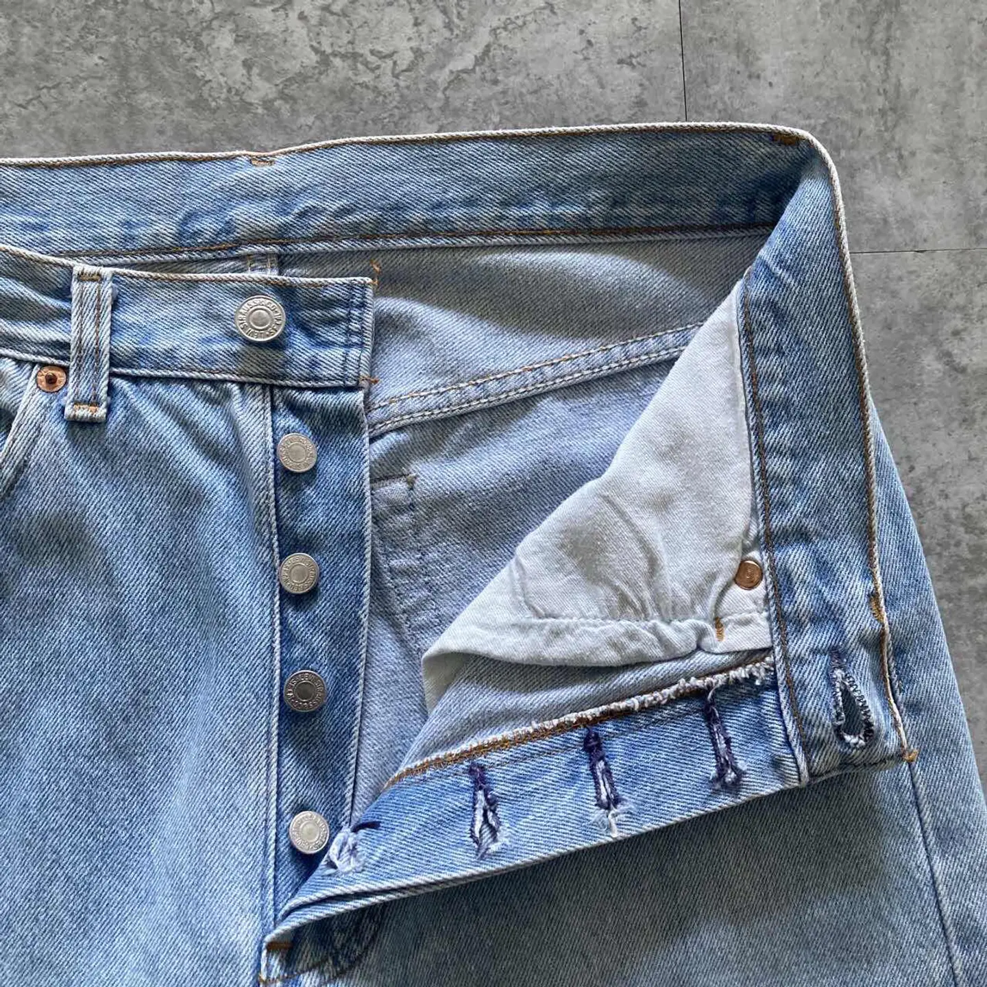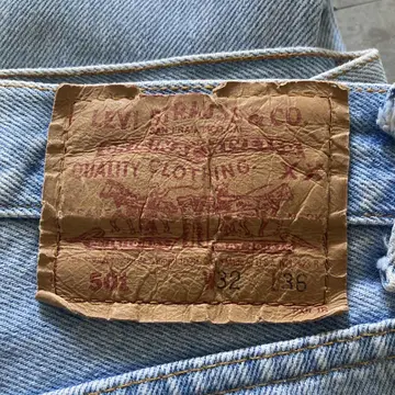 【W30 L34】Levis 501 PREMIUM レザーパッチ ボタンフライ 濃紺 デニムパンツ