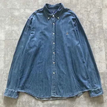 【size XL】RALPH LAUREN ワンポイントロゴ刺繍 ビッグサイズ デニムシャツ