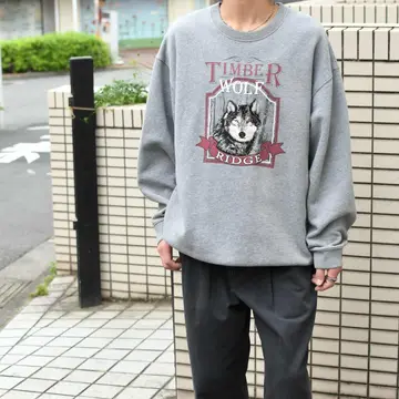 古着 アニマルスウェット 刺繍 スウェット トレーナー オオカミ デザインスウェット