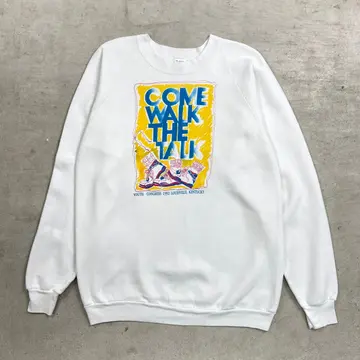 90年代 USA製 COME WALK THE TALK プリントスウェット メンズXL相当 古着 90s VINTAGE ヴィンテージ アメカジ トレーナー 白色