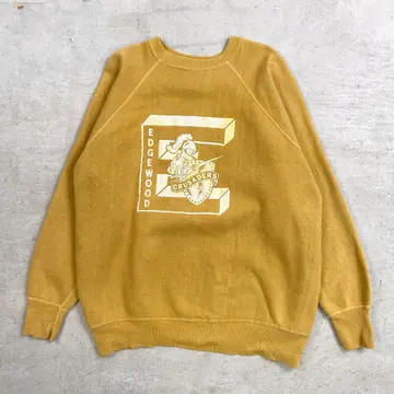 60年代 EDGEWOOD CRUSADERS カラーフロッキープリント 脇下ガゼット 騎士 メンズM相当 古着 60s ヴィンテージ VINTAGE ヴィンスウェ ビンスエ アメカジ スポーツチーム マスタードイエロー