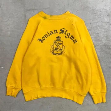 60年代 IONIAN SIGMA フロッキープリント 脇下ガゼット オールドイングリッシュ メンズM相当 レディースS相当 古着 60s ヴィンテージ VINTAGE ヴィンスウェ ビンスエ アメカジ OLD ENGLISH 黄色