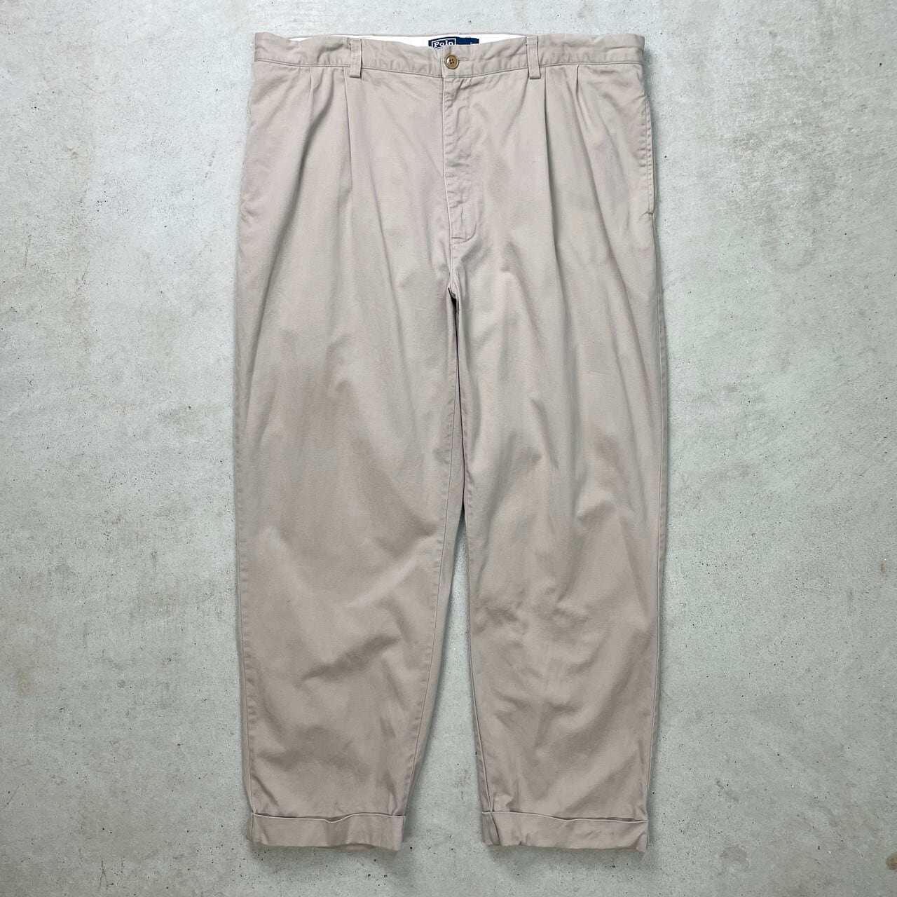 Polo by Ralph Lauren 90年代 ポロチノ ワイド テーパード チノパンツ XL ベージュ コットン