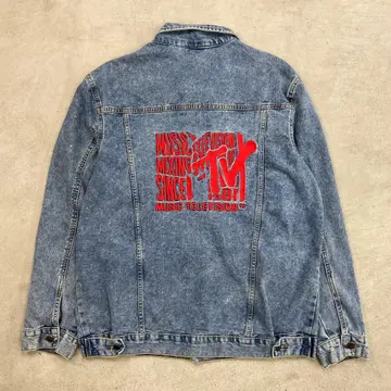 MTV ロゴ刺繍 トラッカーデニムジャケット メンズXL 古着 アメカジ MUSIC TELEVISION 青色
