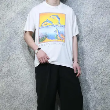 古着 92's USA製 シングルステッチ イルカ プリントTシャツ ボロ