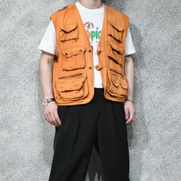古着 フェード ボロ デザインベスト ベスト オレンジ