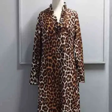 Vintage Flutterbye USA製 レオパード柄 ロング ワンピース TALONジップ 総柄 長袖
