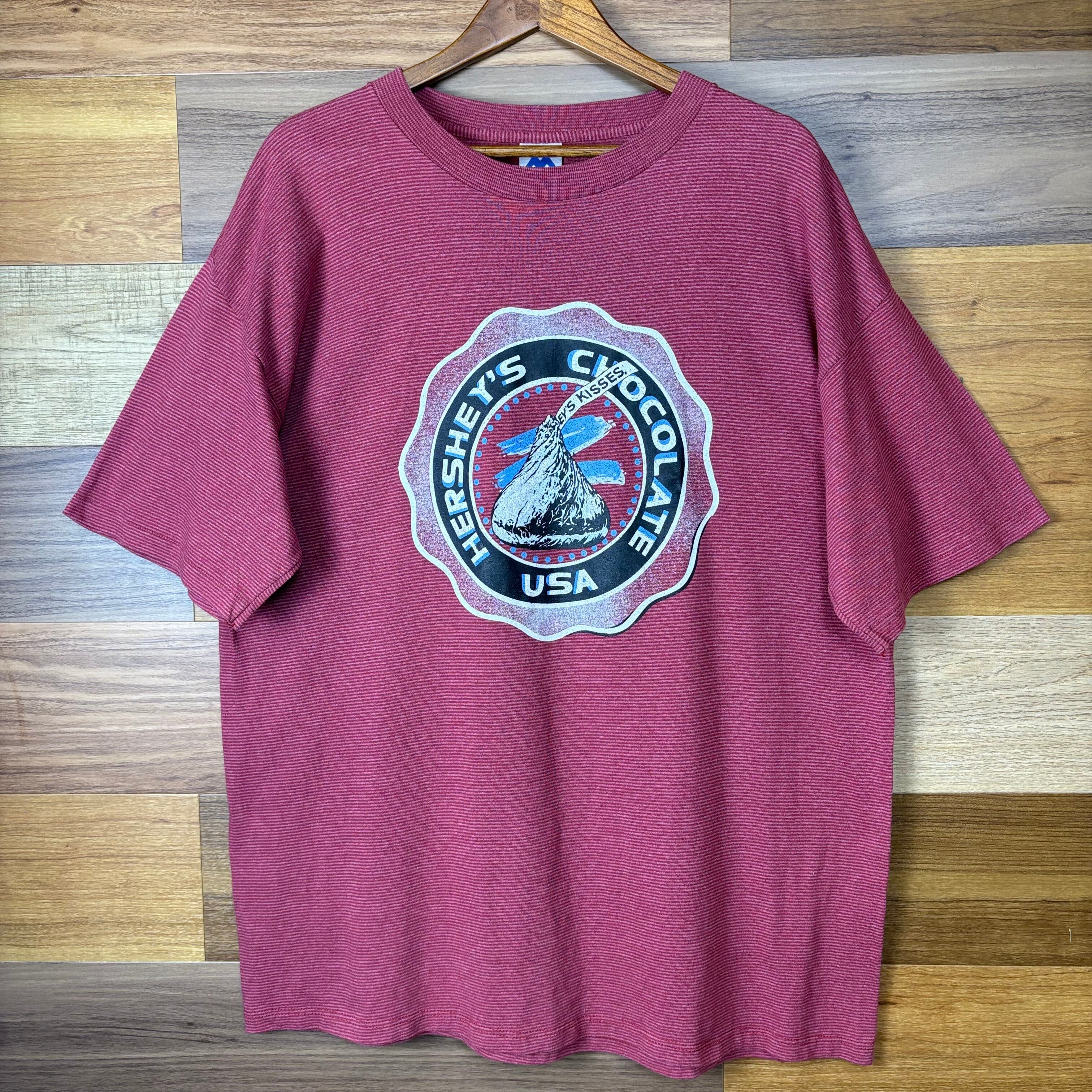 USA製 90s HERSHEY'S ハーシー キスチョコ 細ボーダー 企業 Tシャツ サイズ メンズ XL 袖アメリカ製 90年代 VINTAGE ヴィンテージ 古着 r25070826/その他