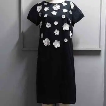agnes b. 花柄 シャツワンピース ブラック サイズ36 半袖 アニエスベー