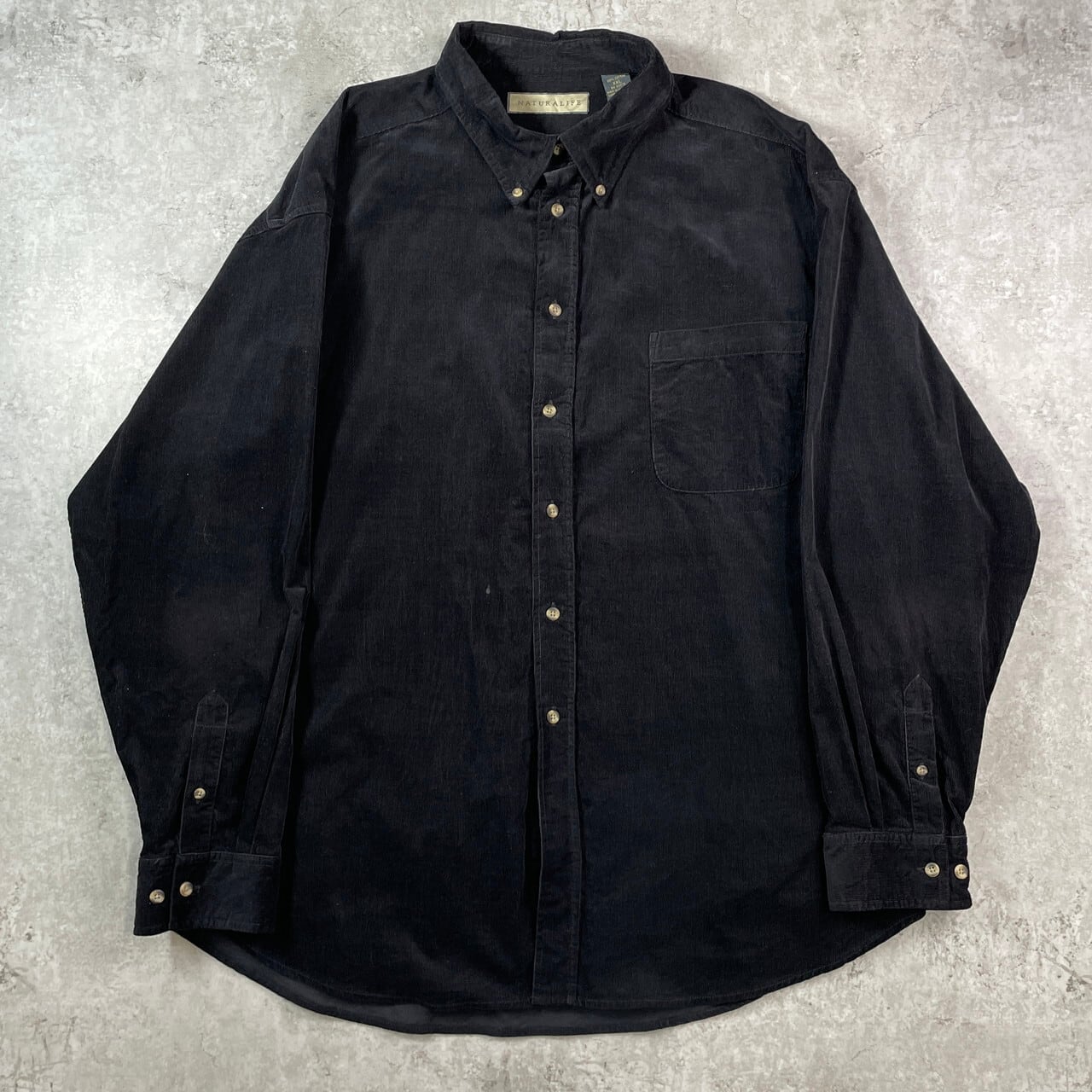 NATURALIFE 長袖 ブラックコーデュロイシャツ メンズ2XL