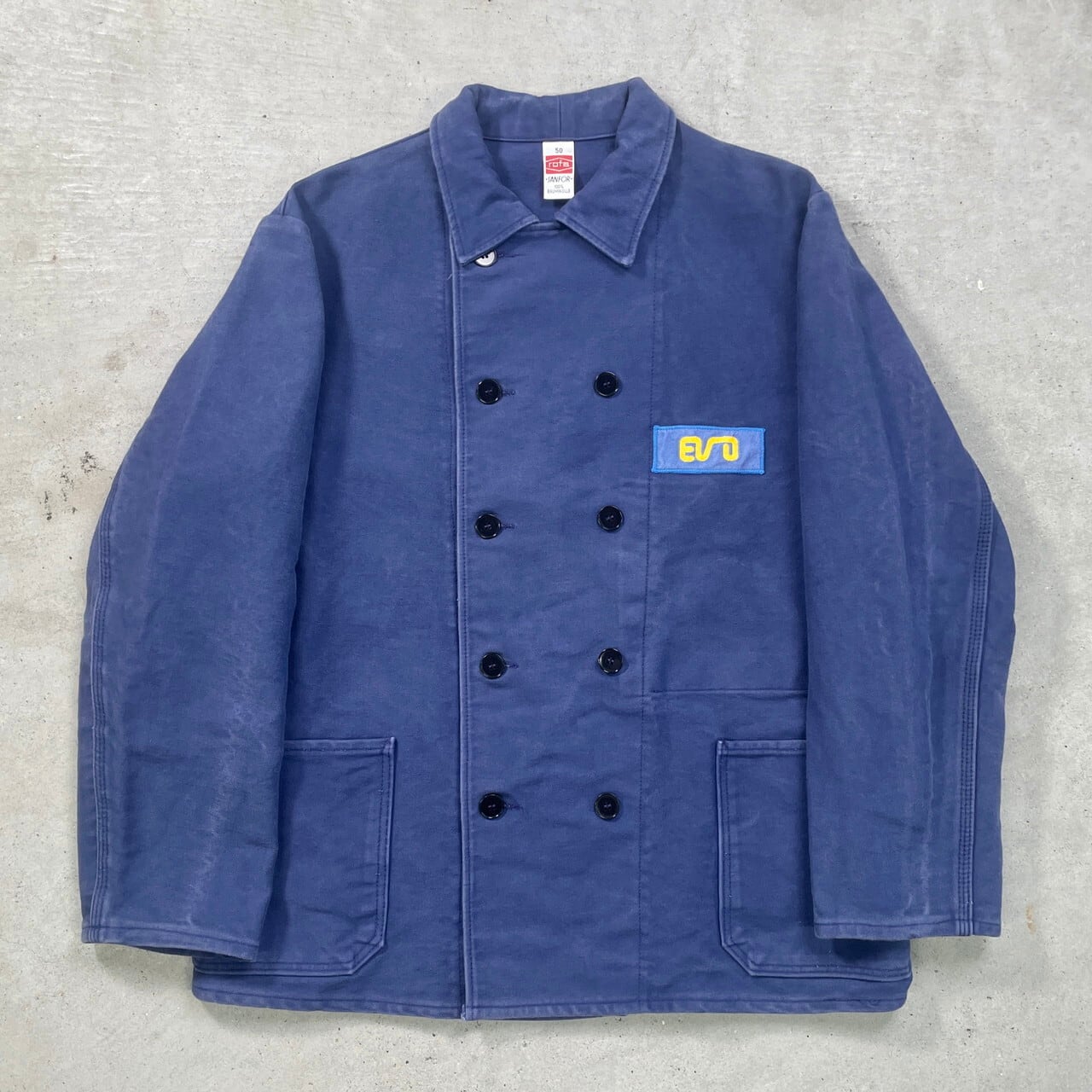 70年代 rofa ダブルブレスト ブルー モールスキンジャケット ジャーマンワーク メンズL-XL相当