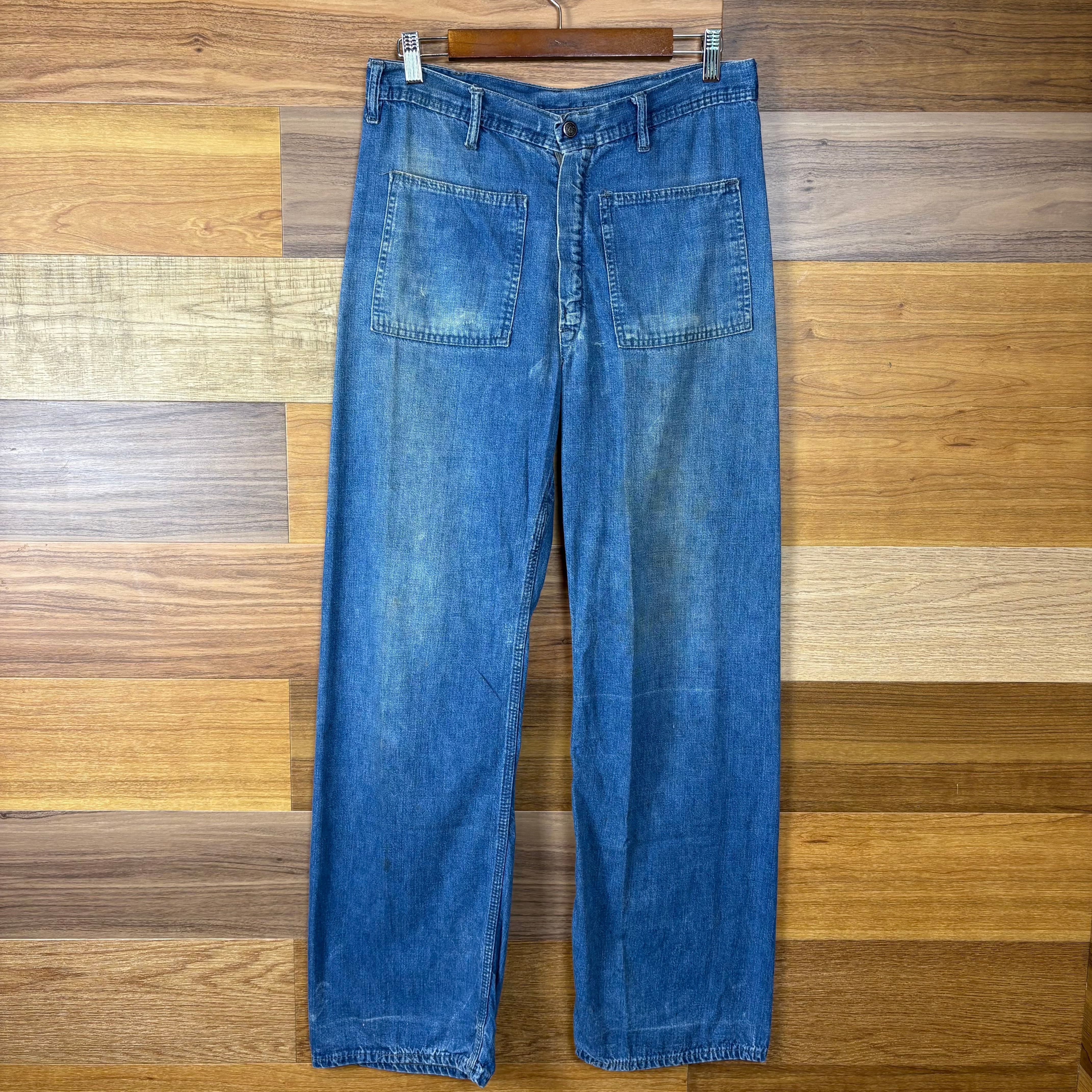50s DUBBLE WARE ダブルウェア ノーシーム 巻き インディゴ デニム ワーク パンツ サイズ メンズ M位 50年代 古着 r25050915