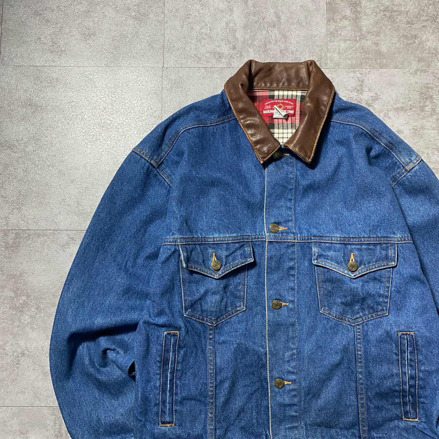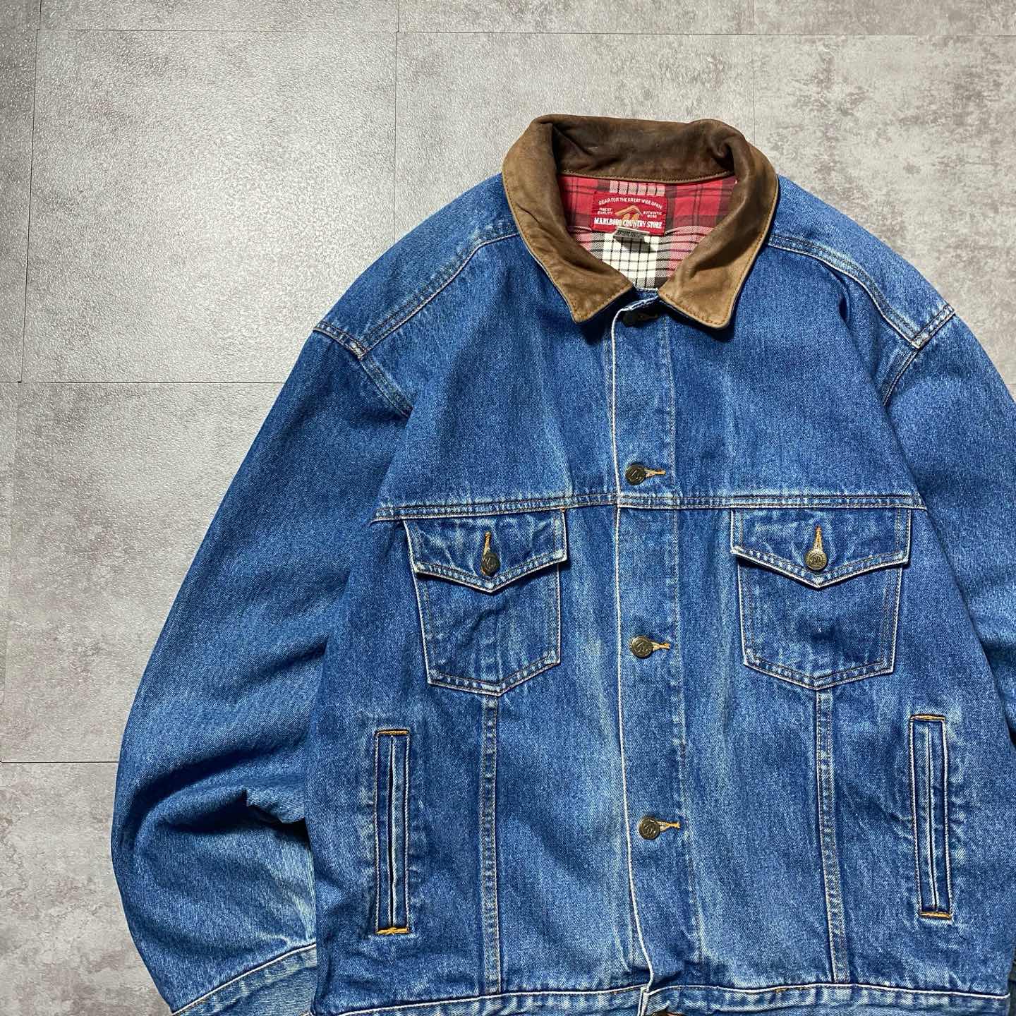 90's マルボロ レザー襟 ダブルポケット デニムジャケット ジージャン