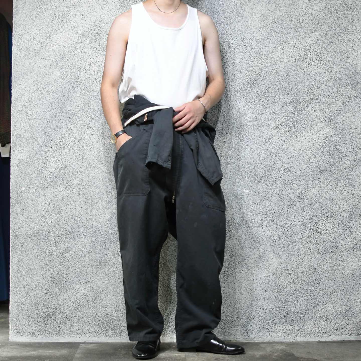 古着 ユーロワーク つなぎ オールインワン ボロ ブラック 黒