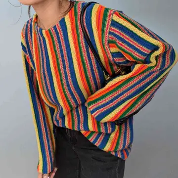 80's JAPAN vintage Multi color border knit tops