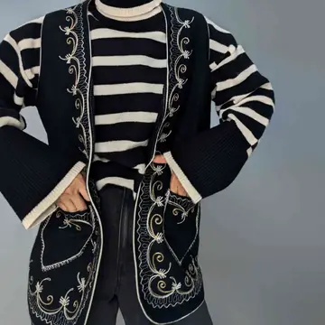 Embroidery piping wool gilet
