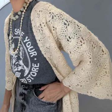 VaVabyjoyhan mohair like crochet knit gaun/ヴァヴァバイジョイハン モヘアライクガウン USA インポート