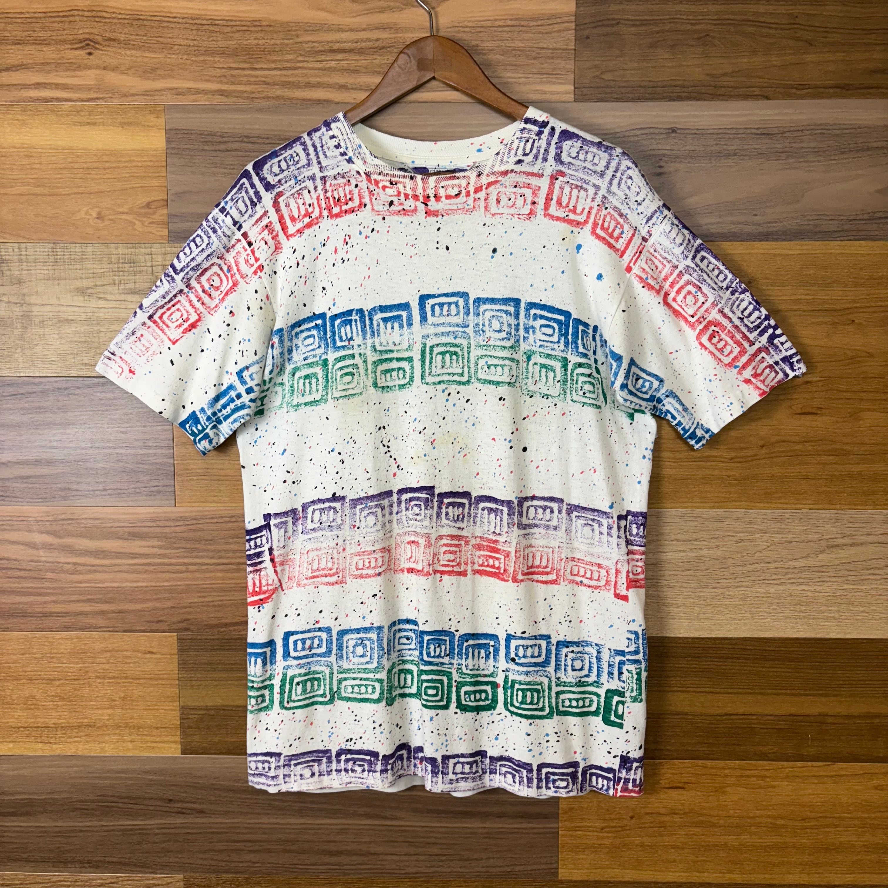 USA製 90s オールオーバー 総柄 プリント Tシャツ サイズ メンズ L アメリカ製 90年代 VINTAGE ヴィンテージ 古着 r25062711/ホワイト