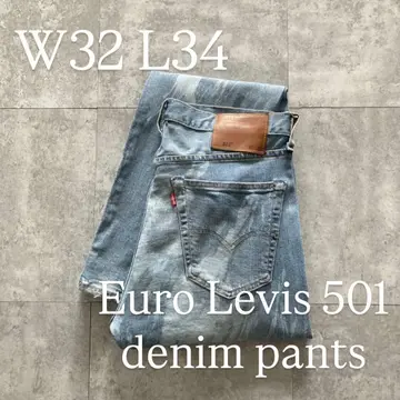 【W32 L34】Euro Levis 501 ポーランド製 ブリーチ加工 ボタンフライレザーパッチ