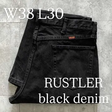 【38×30】RUSTLER ラスター ジッパーフライ ワンポイント ロゴ刺繍 ブラックデニム